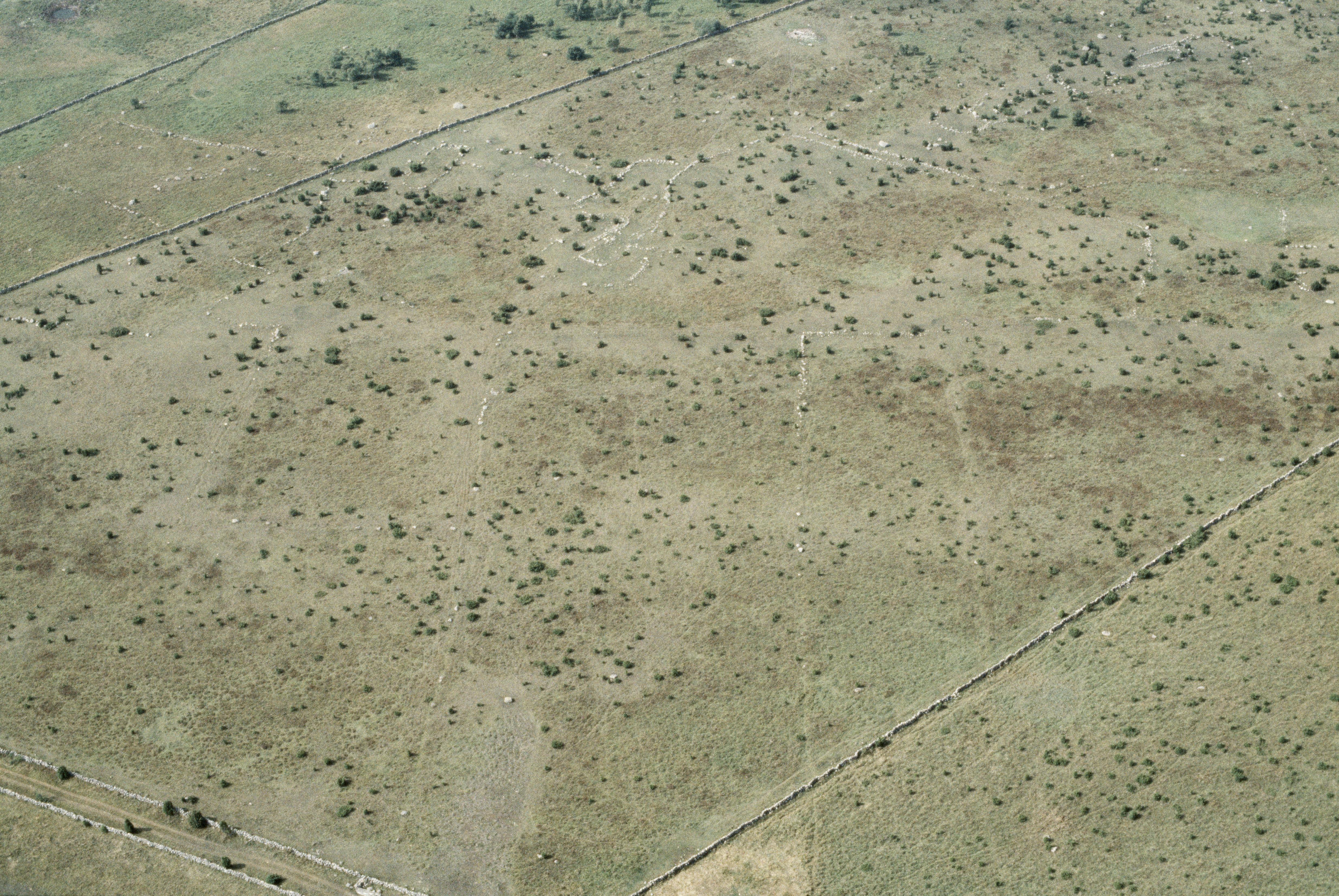 Beskrivning: Jättegravarna vid Slatekärr. Hägnadssystem RAÄnr Löt 65:12 och husgrunder RAÄnr Löt 65:5, 65:6, 65:8, 65:9 m.fl. Bilden är tagen mot (väderstreck): VSV