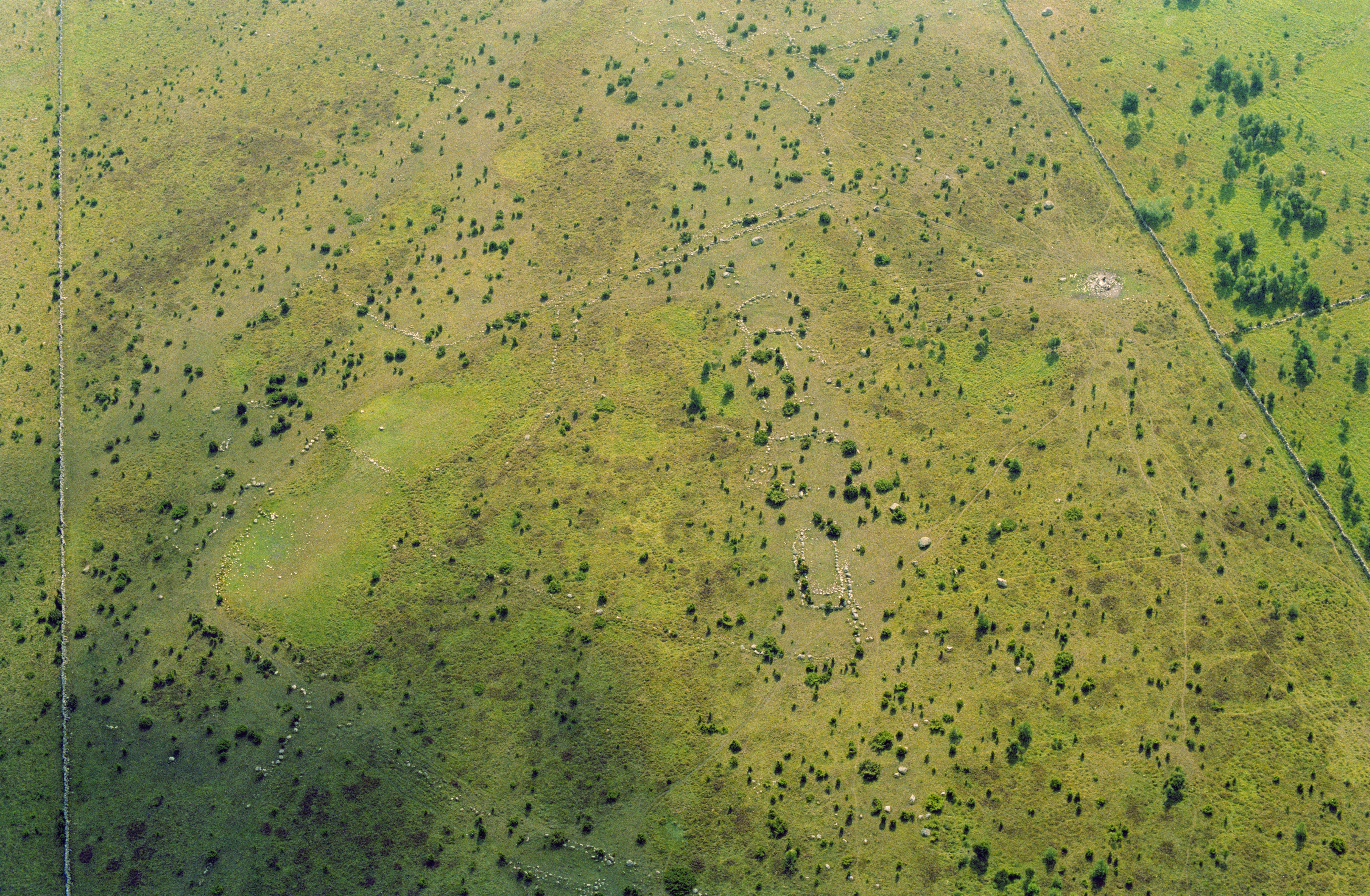 Beskrivning: Jättegravarna vid Slatekärr. Hägnadssystem RAÄnr Löt 65:12 och husgrunder RAÄnr Löt 65:4, 65:5, 65:6, 65:8, 65:9 m.fl. Bilden är tagen mot (väderstreck): SO