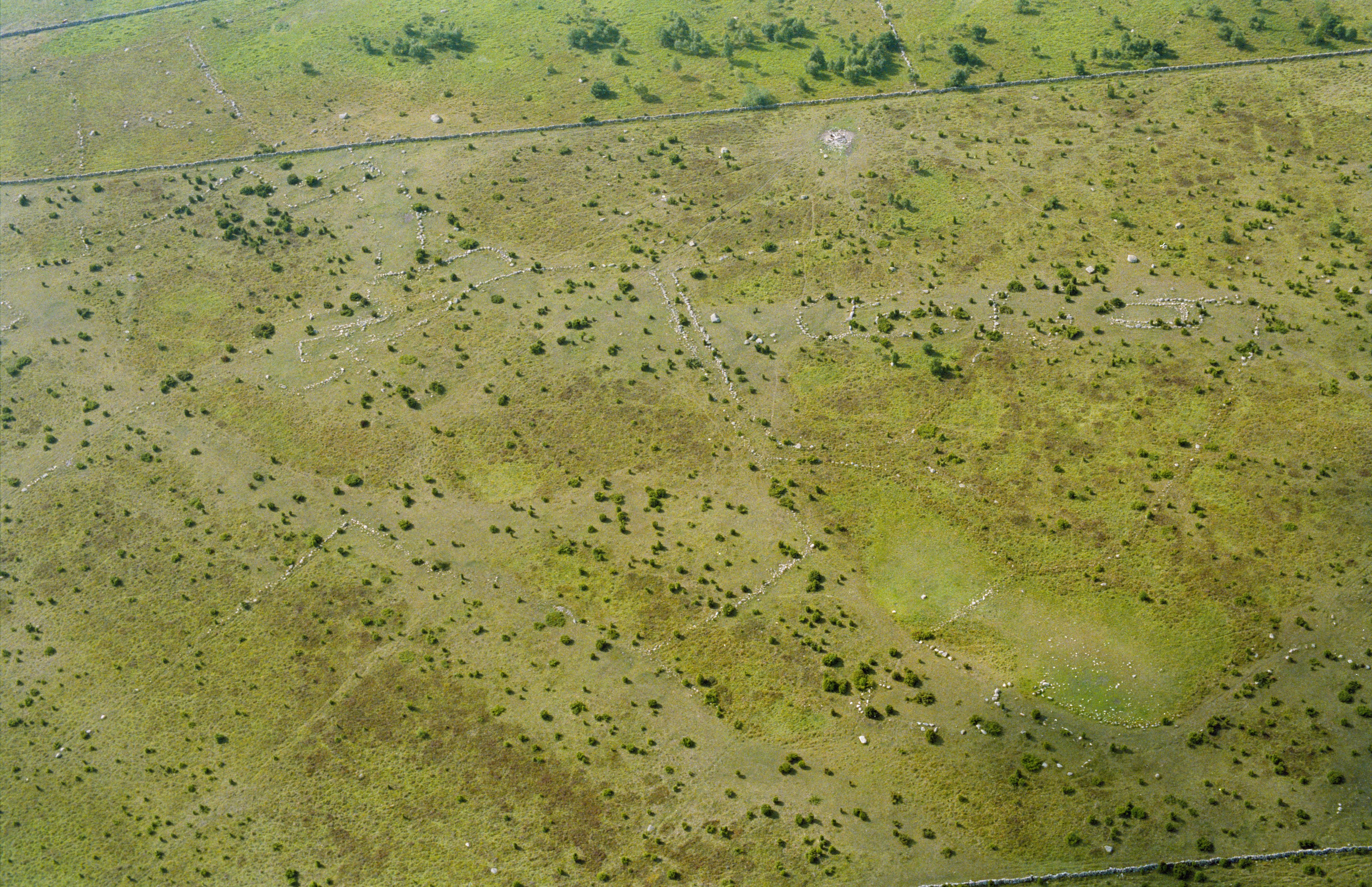 Beskrivning: Jättegravarna vid Slatekärr. Hägnadssystem RAÄnr Löt 65:12 och husgrunder RAÄnr Löt 65:4, 65:5 (till höger), 65:6, 65:8, 65:9 m.fl. Bilden är tagen mot (väderstreck): SV