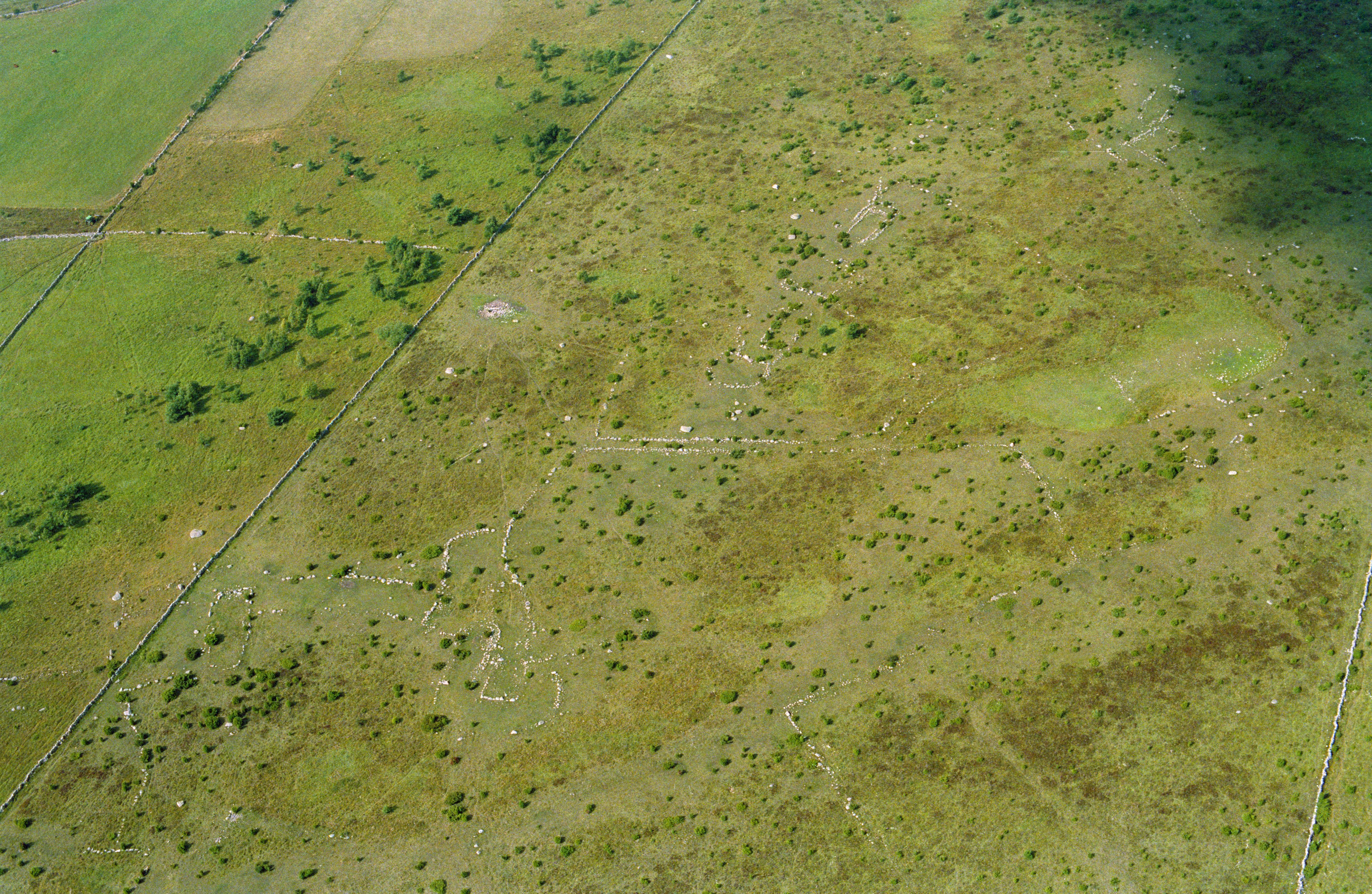 Beskrivning: Jättegravarna vid Slatekärr. Hägnadssystem RAÄnr Löt 65:12 och husgrunder RAÄnr Löt 65:4, 65:5 (uppe till höger), 65:6, 65:8, 65:9 m.fl. Bilden är tagen mot (väderstreck): NV