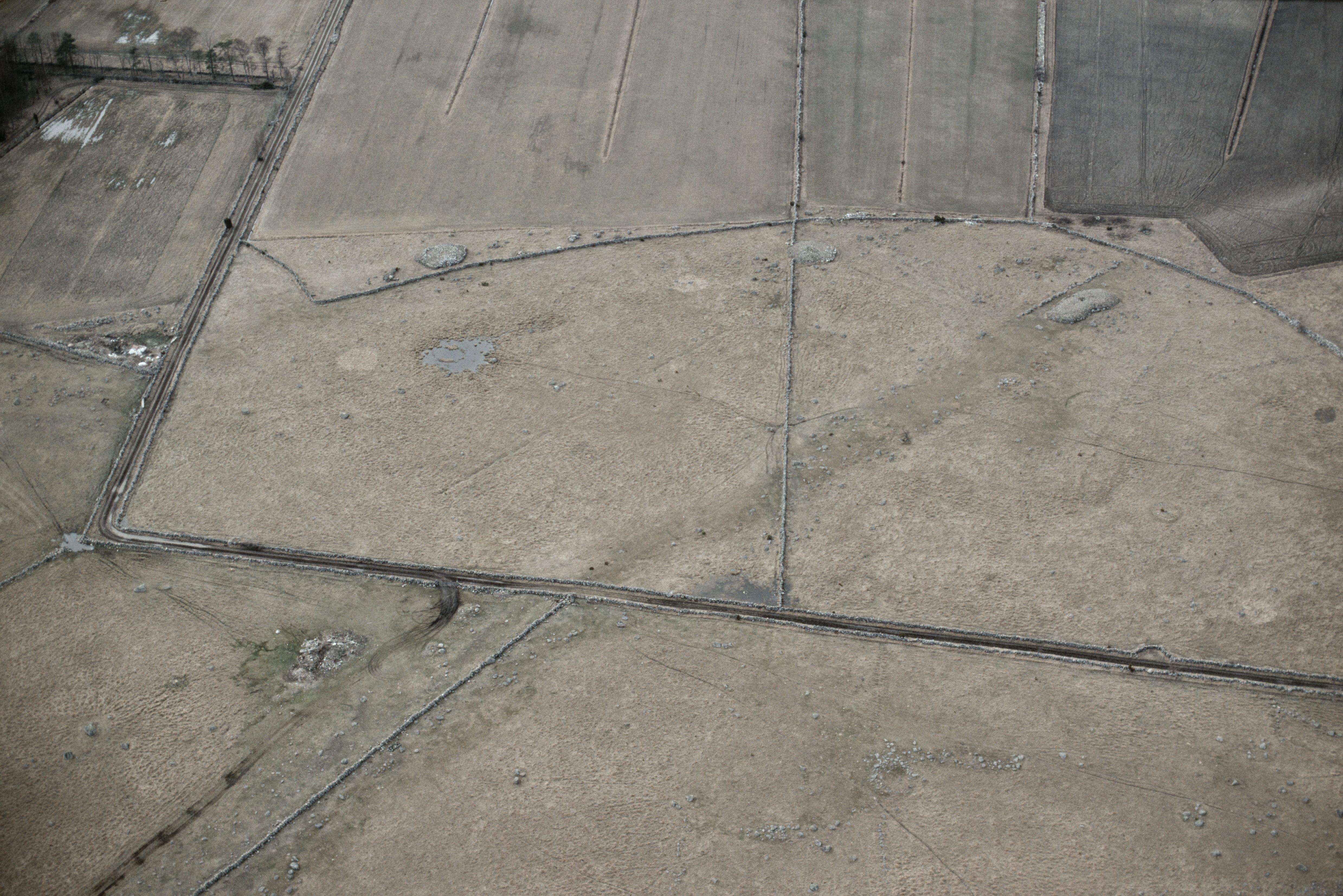 Beskrivning: Jättegravarna. Gravfält RAÄnr Löt 19:1 i bildens mitt. Bilden är tagen mot (väderstreck): VSV