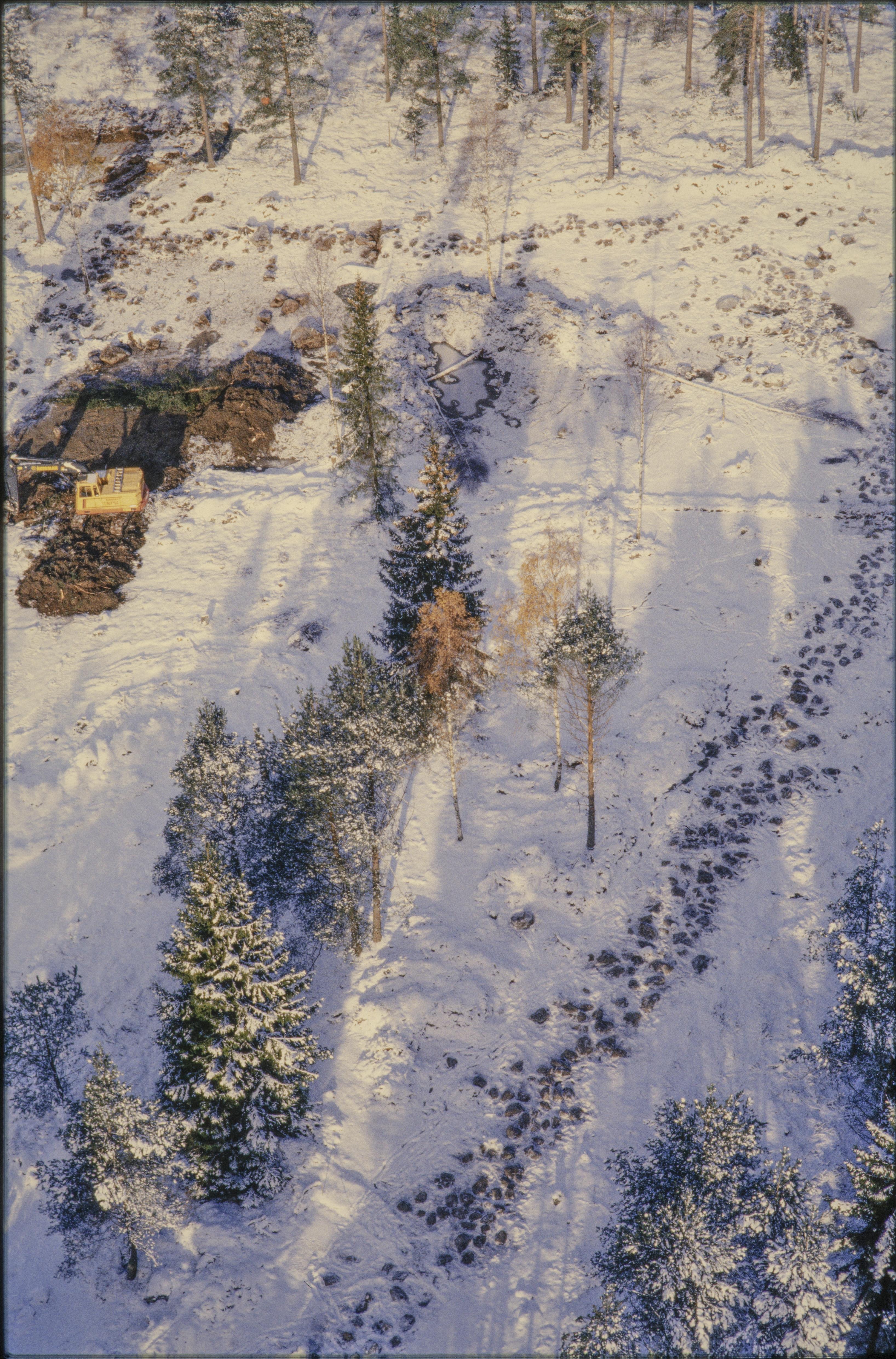 Beskrivning: Arkeologisk undersökning innan bygge av järnväg (Arlandabanan) i Rickebyåns dalgång vid Åslunda by sydost om Svartsjön. Bo- och gravplats med hägnad RAÄnr Odensala 401:1-3 och gravrösen Odensala 4:1-2. Bilden är tagen mot (väderstreck): N