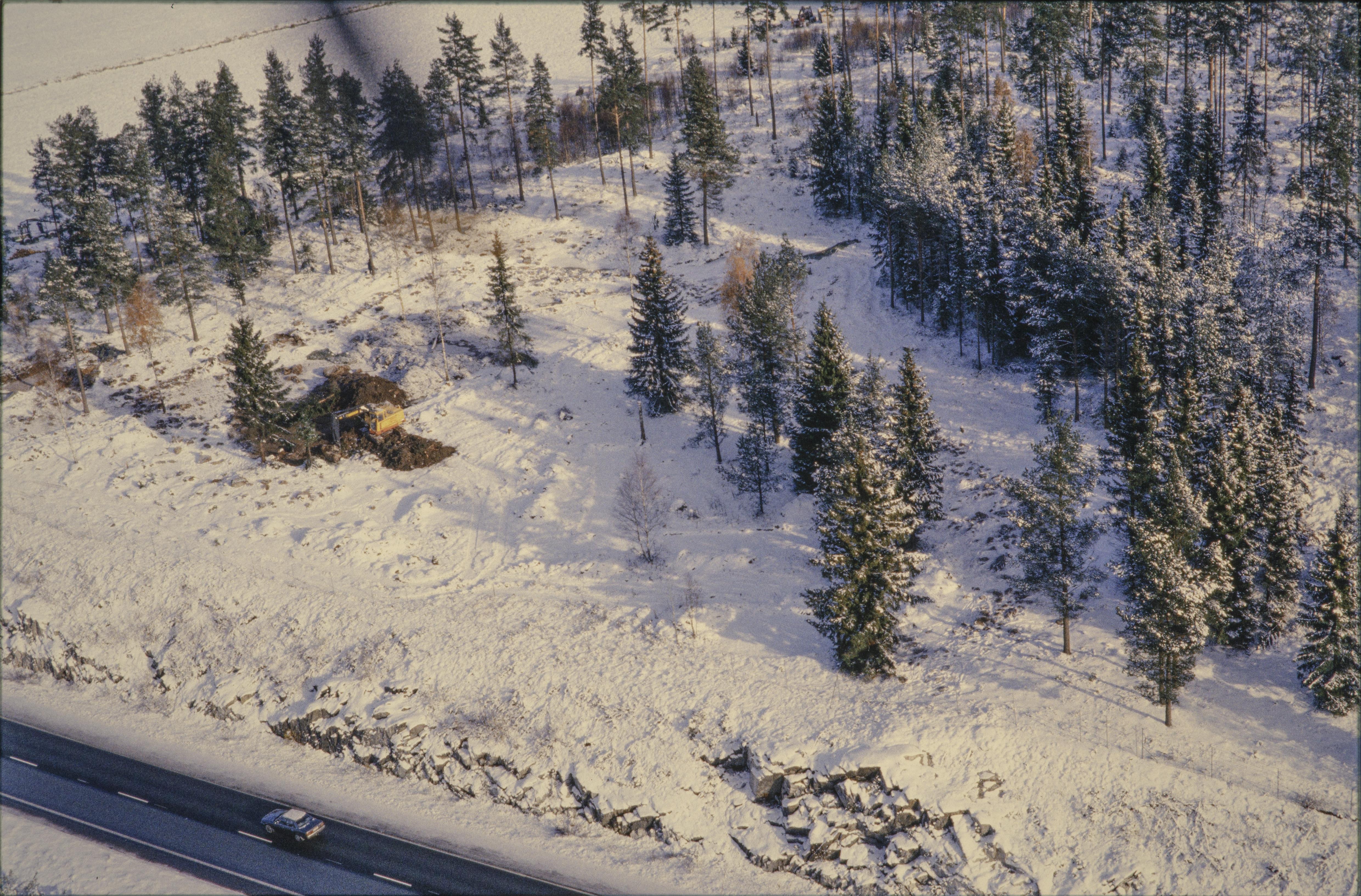 Beskrivning: Arkeologisk undersökning innan bygge av järnväg (Arlandabanan) i Rickebyåns dalgång vid Åslunda by sydost om Svartsjön. Bo- och gravplats med hägnad RAÄnr Odensala 401:1-3 och gravrösen Odensala 4:1-2. Bilden är tagen mot (väderstreck): ONO