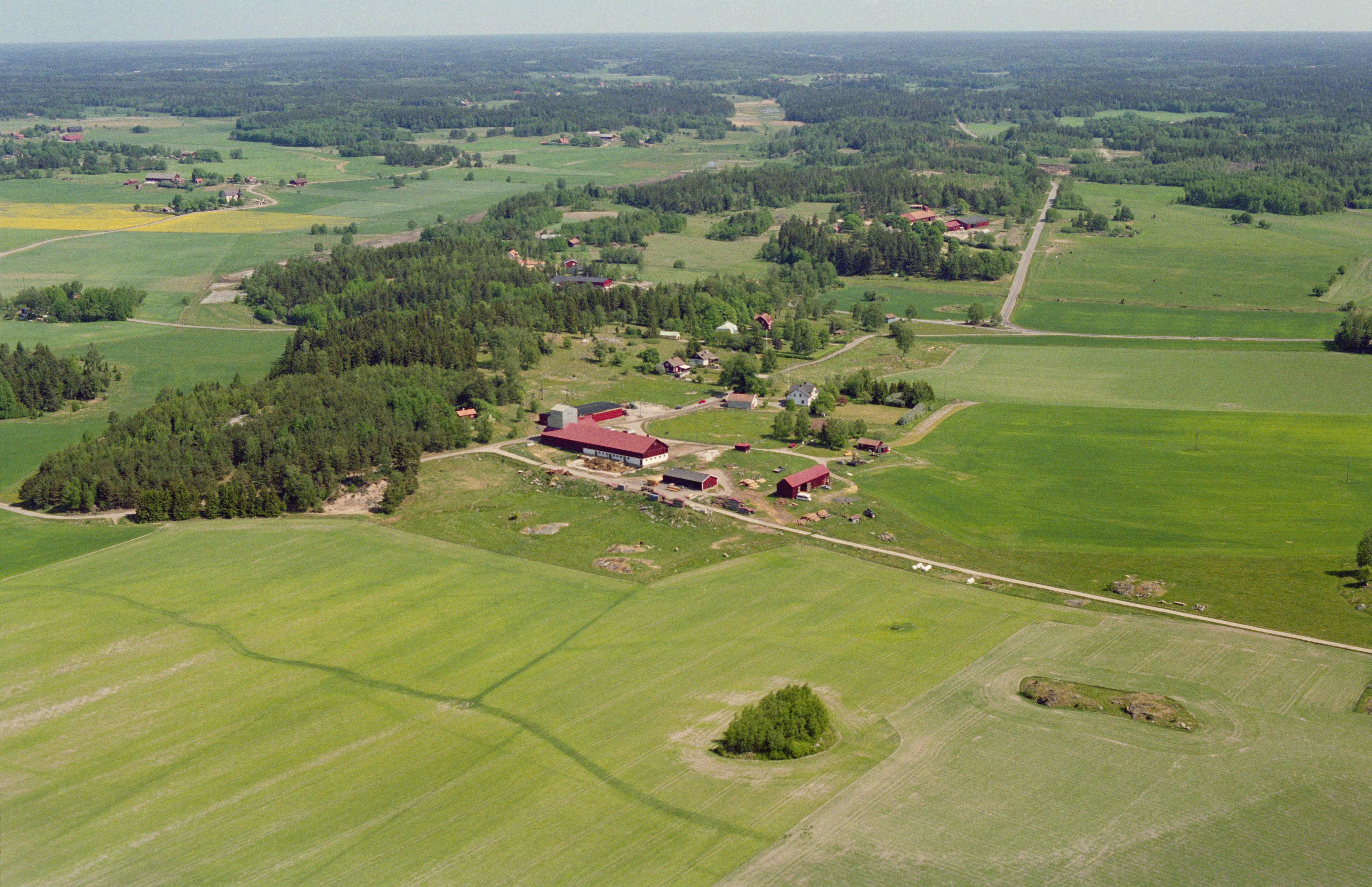 Beskrivning: Vid bildens mitt boplats Hyppinge gamla tomt med runristning, stensättningar RAÄnr Orkesta 25:1, 44:1, 45:1-2, 157 m.fl.. Bilden är tagen mot (väderstreck): ONO