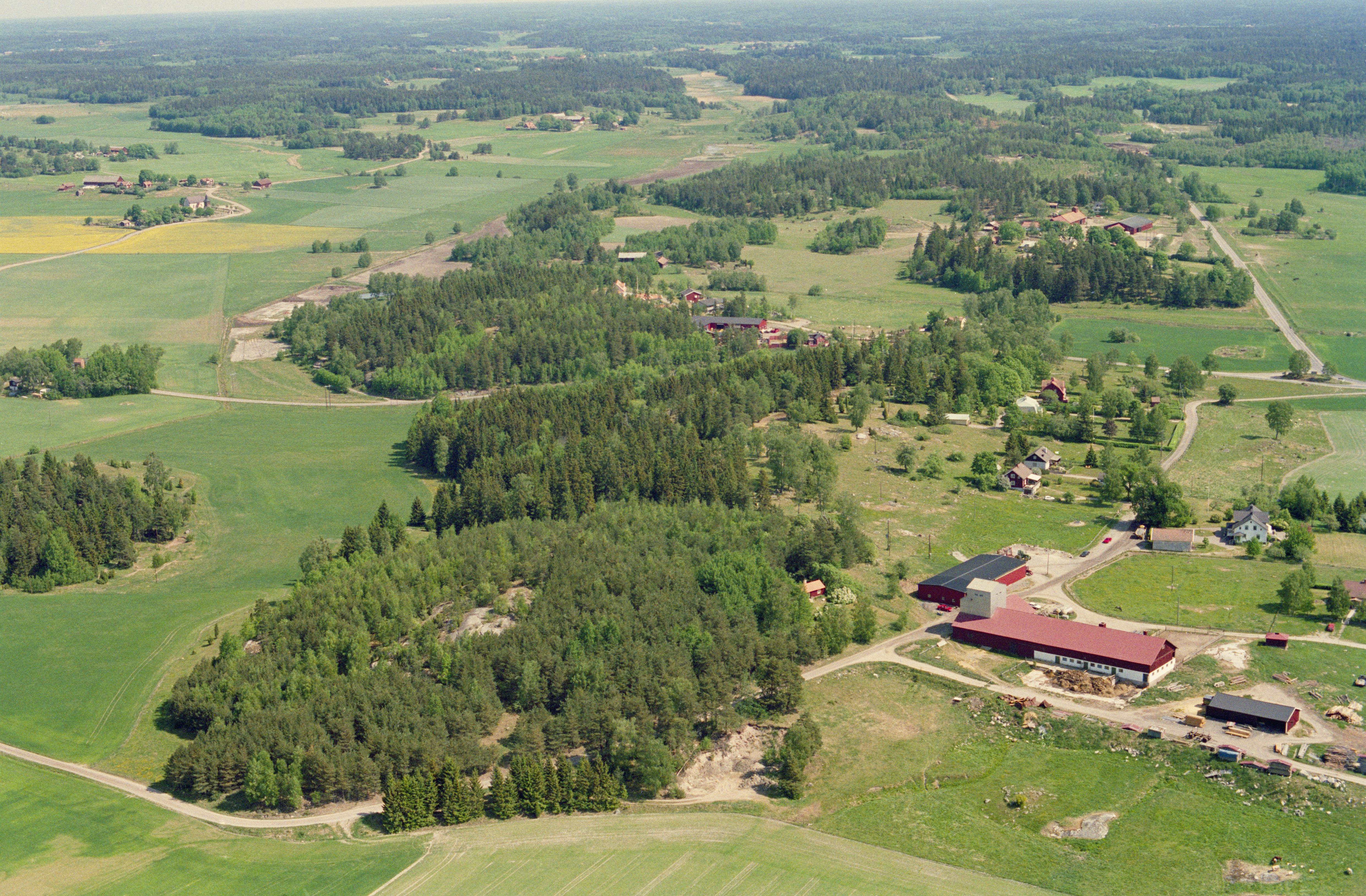 Beskrivning: Vid bildens mitt boplats Hyppinge gamla tomt med runristning, stensättningar RAÄnr Orkesta 25:1, 44:1, 45:1-2, 157 m.fl.. Bilden är tagen mot (väderstreck): ONO