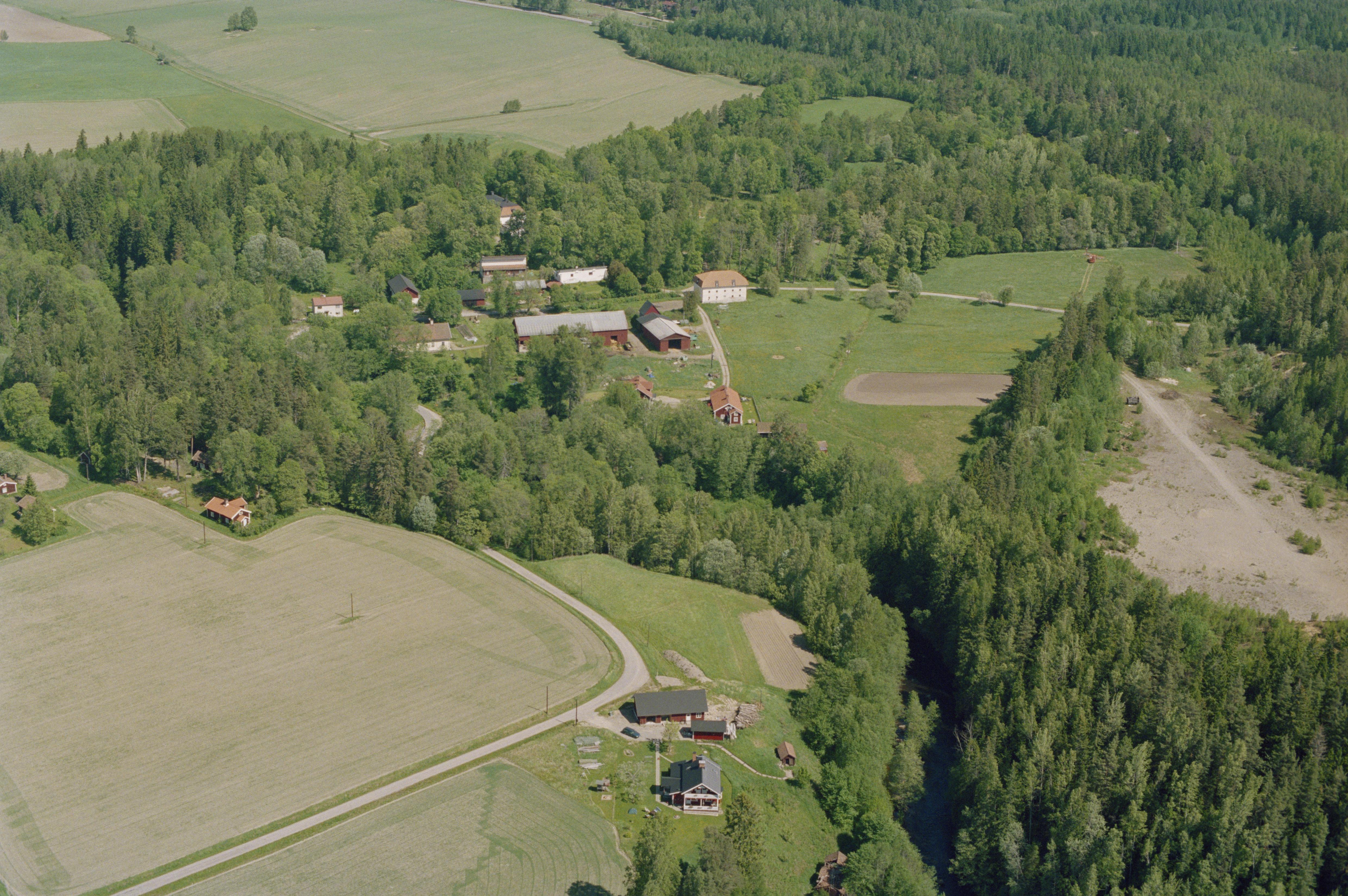 Beskrivning: Hedströmmens dalgång som markerar gränsen mellan socknen Kolsva (nere till vänster) och Hed (över och till höger). Nere till vänster Valbricka by med hammarområde RAÄnr Kolsva 224:1. Uppe till höger Bernshammars bruk och Bergshammars herrgård vid hammarområde RAÄnr Hed 9:1 m.fl. Bilden är tagen mot (väderstreck): NNO