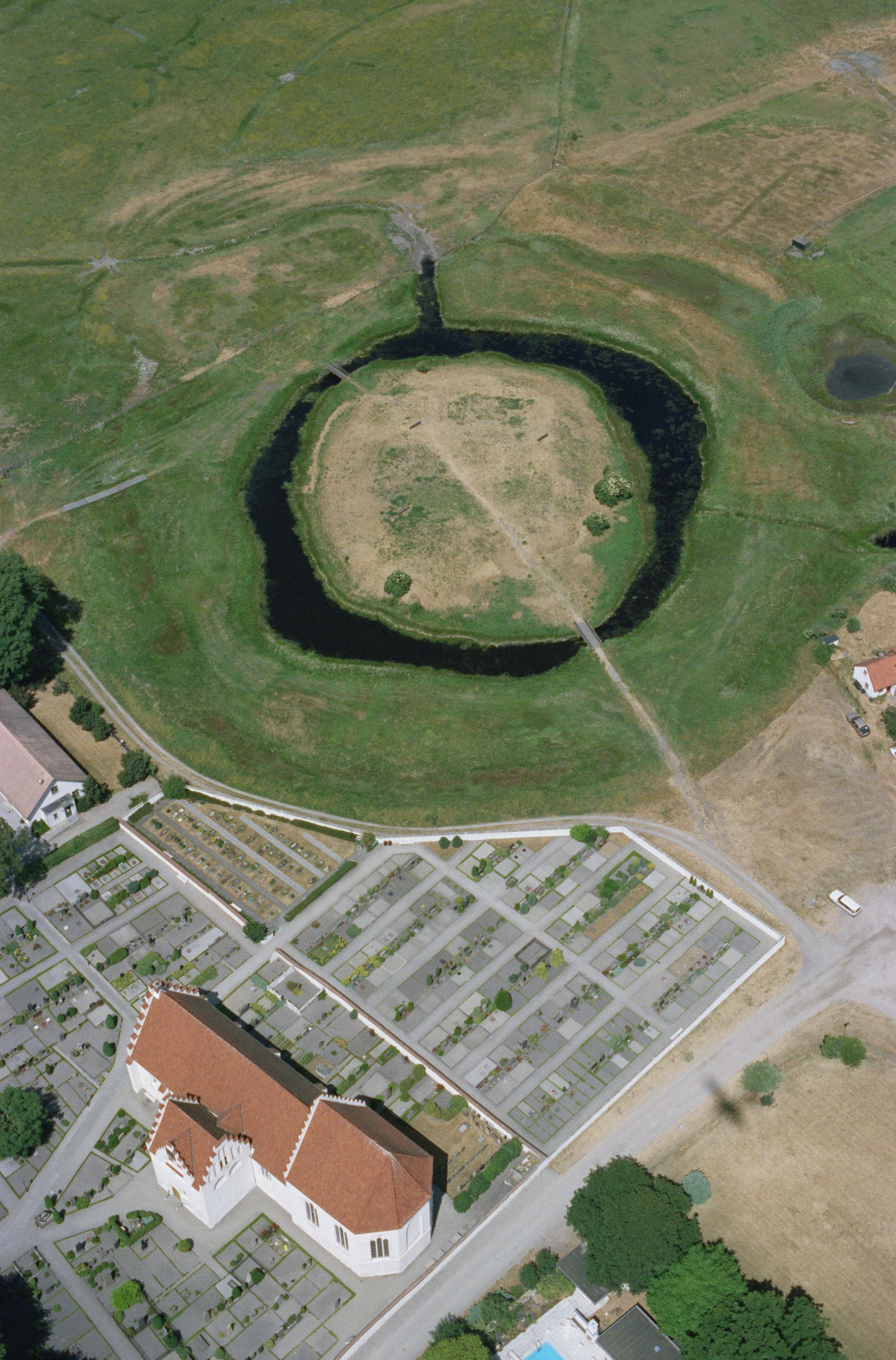 Beskrivning: Skanörs kyrka och Skanörs borgruin RAÄnr Skanör m. Falsterbo 1:1. Bilden är tagen mot (väderstreck): N