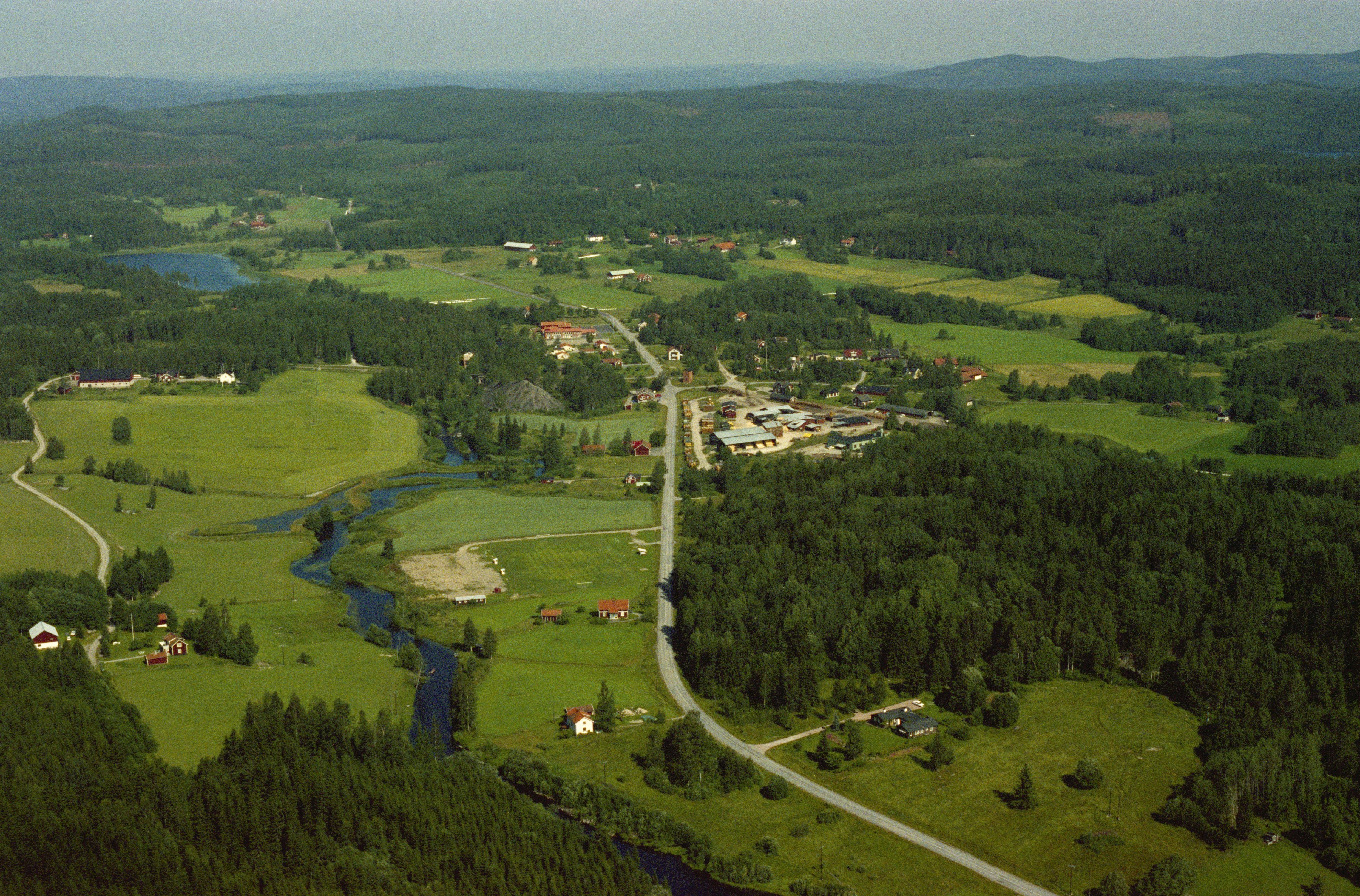 Beskrivning: Järnboås by vid Rastälven. I byn hyttområde RAÄnr Järnboås 45:1 och hyttlämning Järnboås 183. Uppe till vänster Lindesbysjön. Bilden är tagen mot (väderstreck): NV