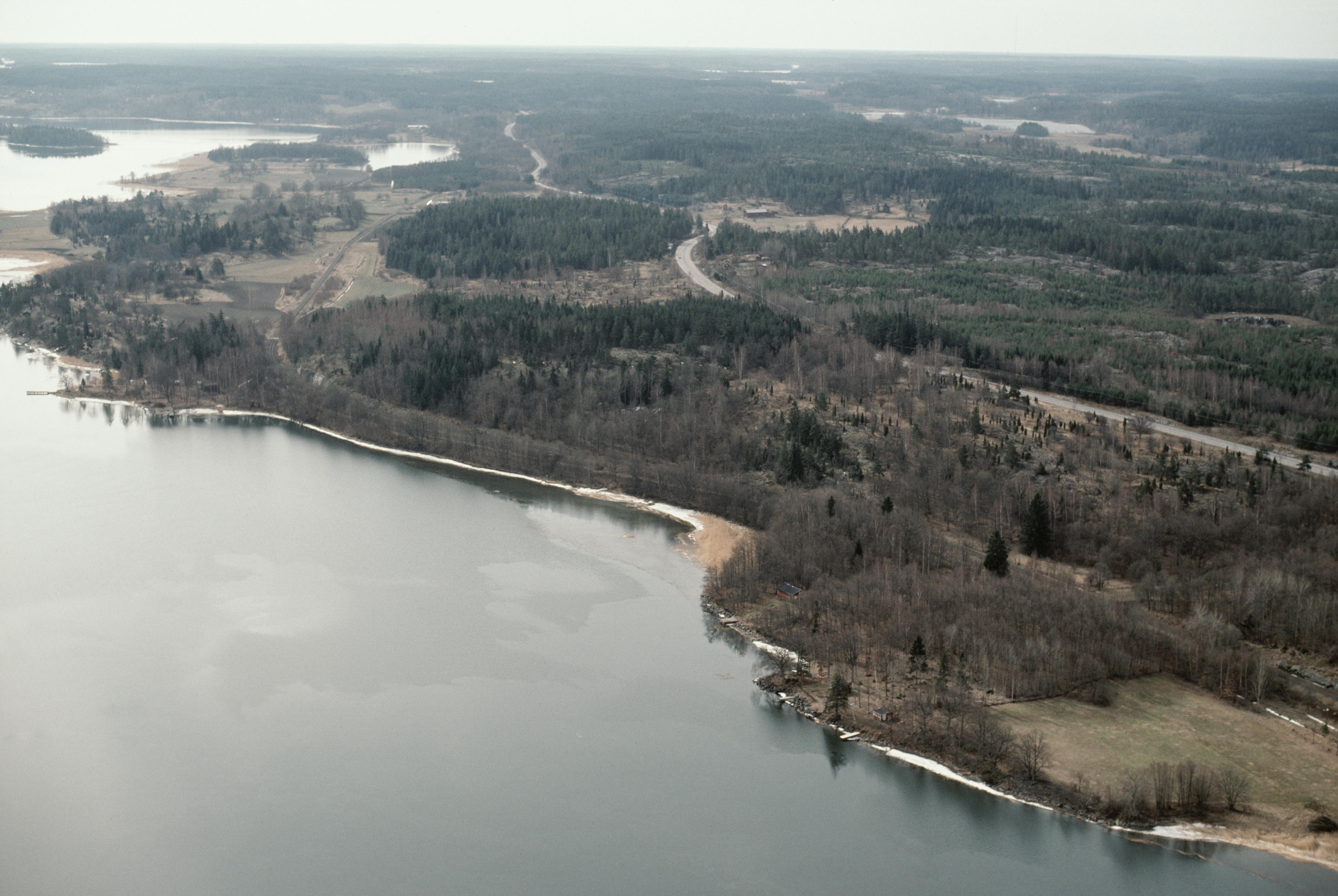 Beskrivning: Gamlebyviken söder om Baggetorp mot Segelrum. Rösen RAÄnr Gamleby 3:1-4 till vänster om bildens mitt. Bilden är tagen mot (väderstreck): SO