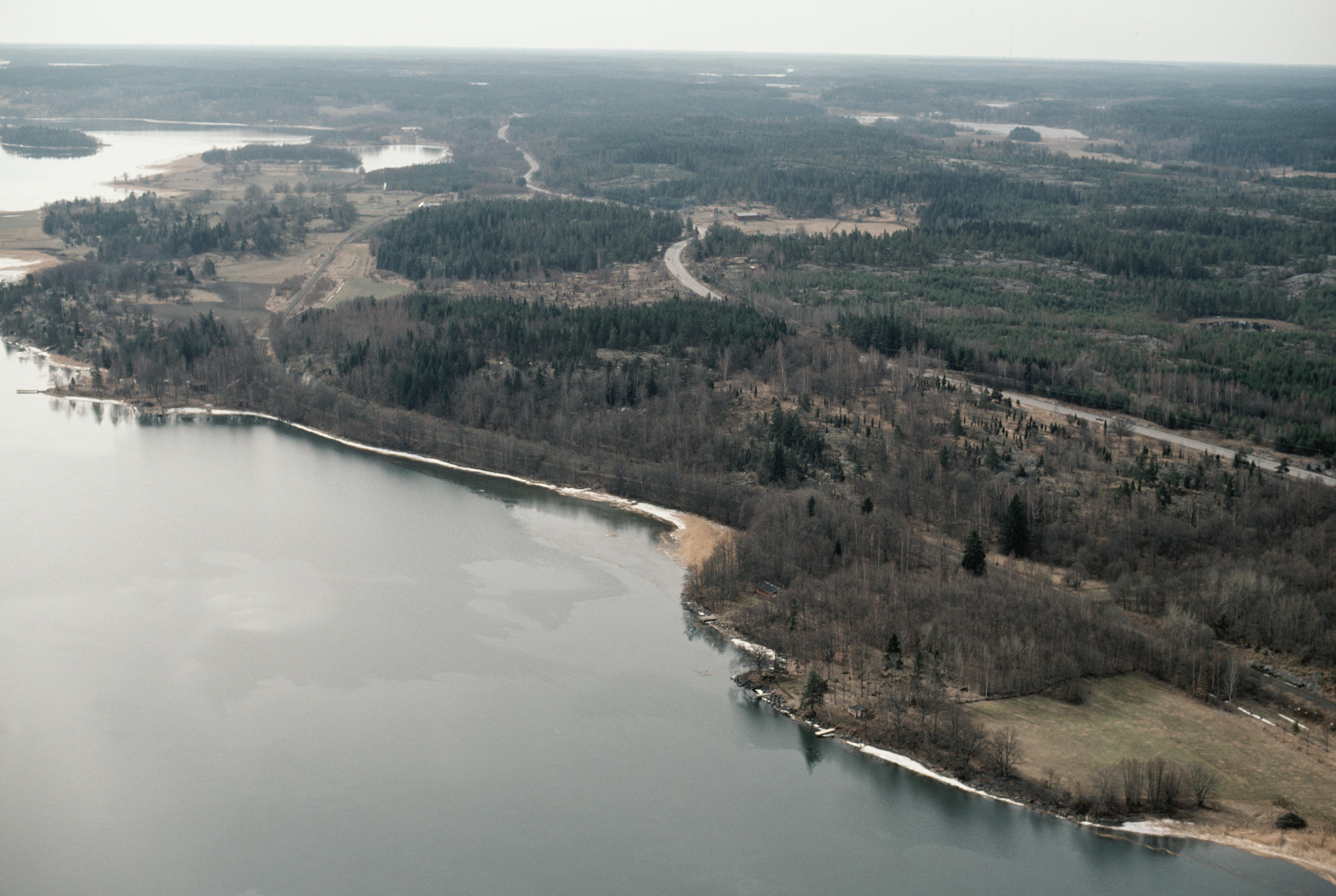 Beskrivning: Gamlebyviken söder om Baggetorp mot Segelrum. Rösen RAÄnr Gamleby 3:1-4 till vänster om bildens mitt. Bilden är tagen mot (väderstreck): SO