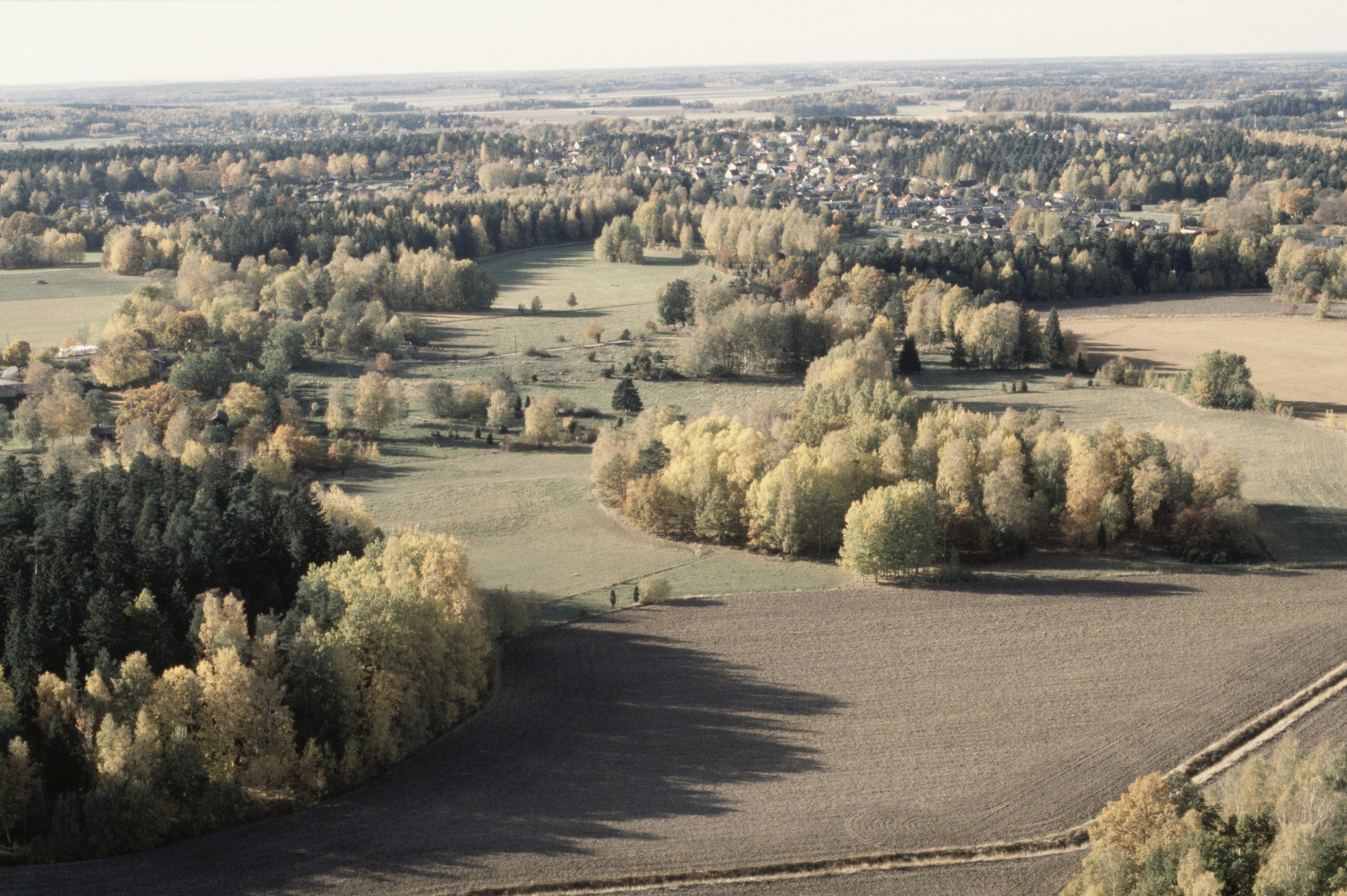 Beskrivning: Området Malmberga. Till vänster under bildens mitt gravfält RAÄnr Kung Karl 125:1. I bildens övre del tätorten Kungsör. Bilden är tagen mot (väderstreck): V