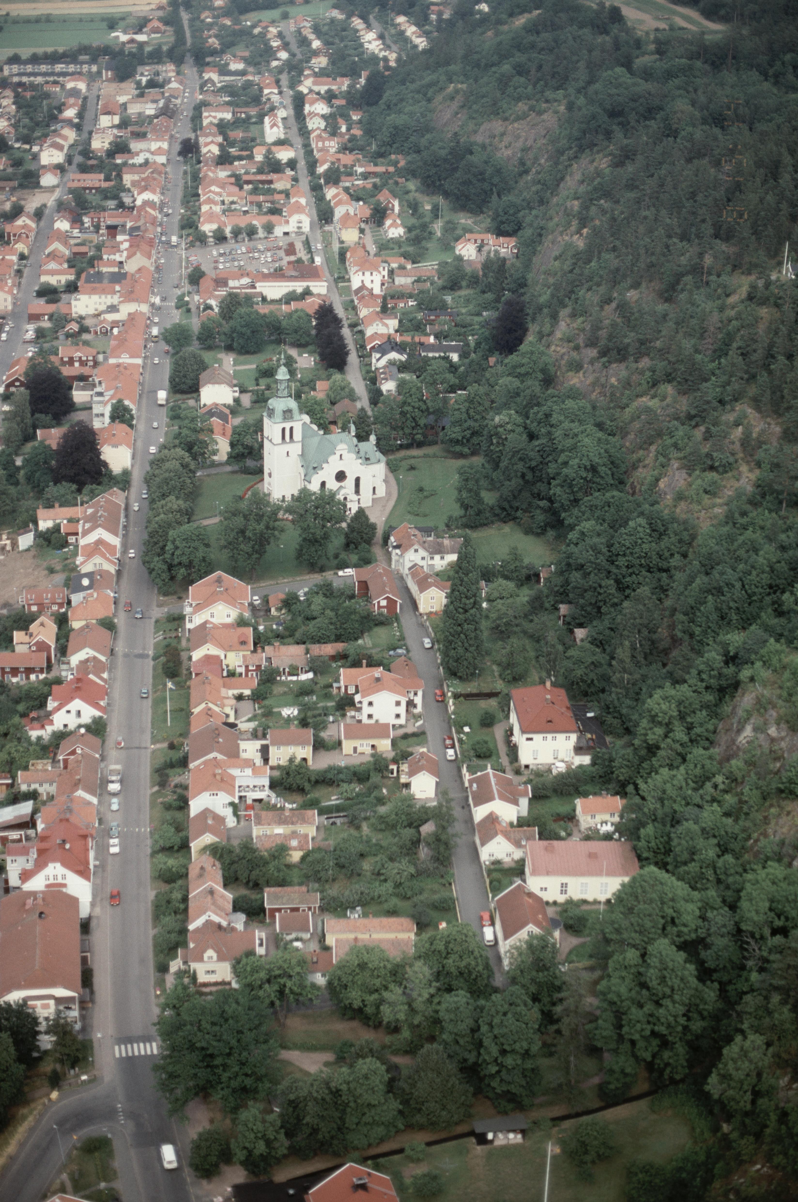 Beskrivning: Gränna kyrka och tätort. Bilden är tagen mot (väderstreck): NNO