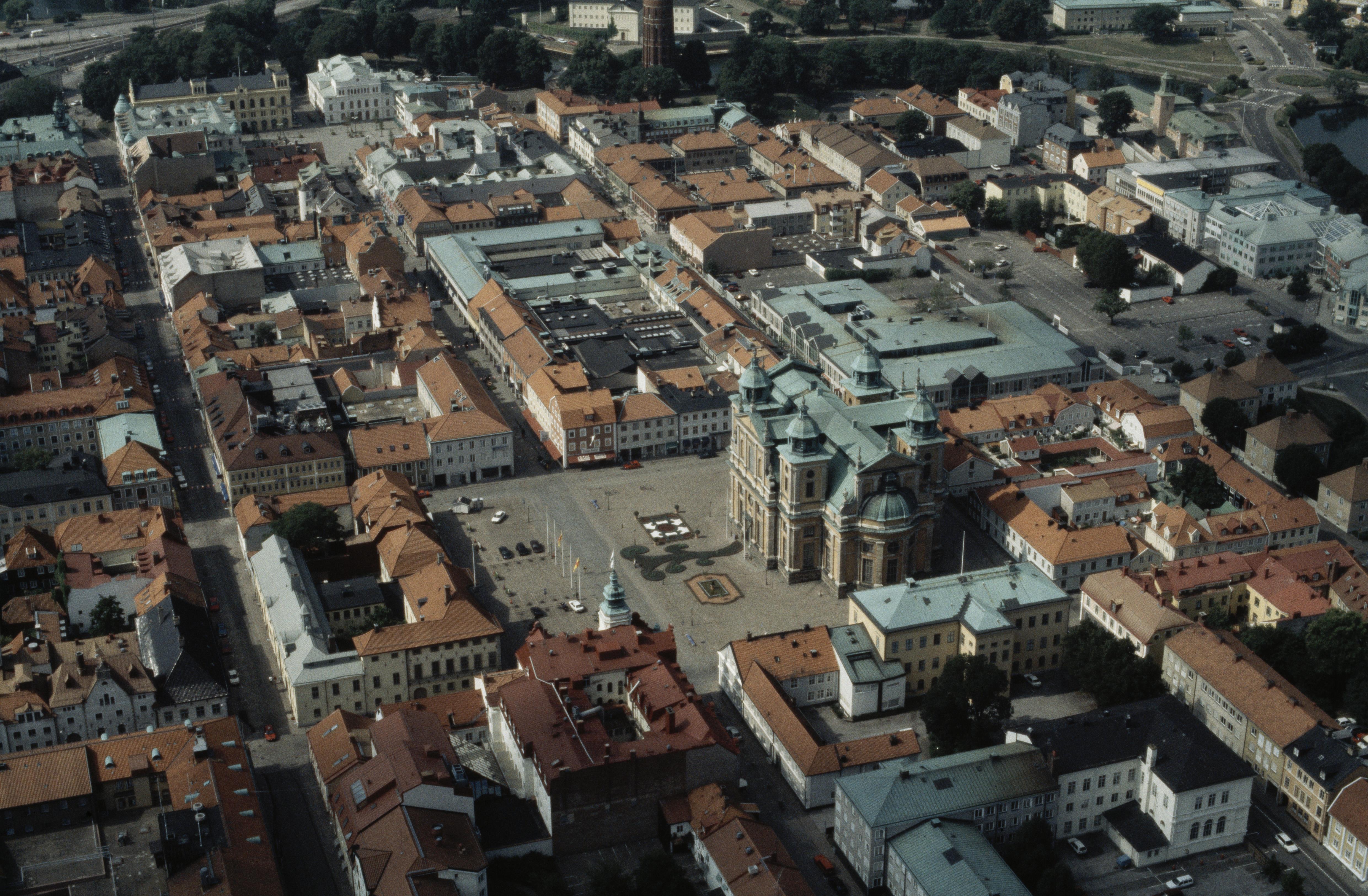 Beskrivning: Anmärkning (övrig): Riksintresse-nr/namn: H48 - Kalmar. Socken: Kalmar. Motivering: Befästnings- och sjöfartsstad som var huvudpunkten för Sveriges Östkustförsvar vid Danmarksgränsen fram till 1600-talets senare del och som utgör ett av landets främsta exempel på 1600-talets stadsbyggnadskonst. Förvaltningsstadens fortsatta utveckling. (Fästningsstad, Residensstad, Slottsmiljö). - Uttryck för riksintresset: Slottet med medeltida delar och huvudsaklig prägel av renässansen. Lämningar av medeltidens och det tidiga 1600-talets stad vid slottet. 1600-talsstaden på Kvarnholmen, med välbevarad rätvinklig rutnätsplan och omgivande befästningar. Gatukaraktären, platsbildningar och tomtstruktur. Domkyrkan av Nicodemus (…) Texten i detta fält har förkortats vid migrering till e-arkivet. Se filbilagan extra.xml för fullständig information under note_archivist. Beskrivning: Kalmar stad. Kalmar domkyrka på Kvarnholmen. Bilden är tagen mot (väderstreck): VNV Fotosyfte: Flygbildsdokumentation