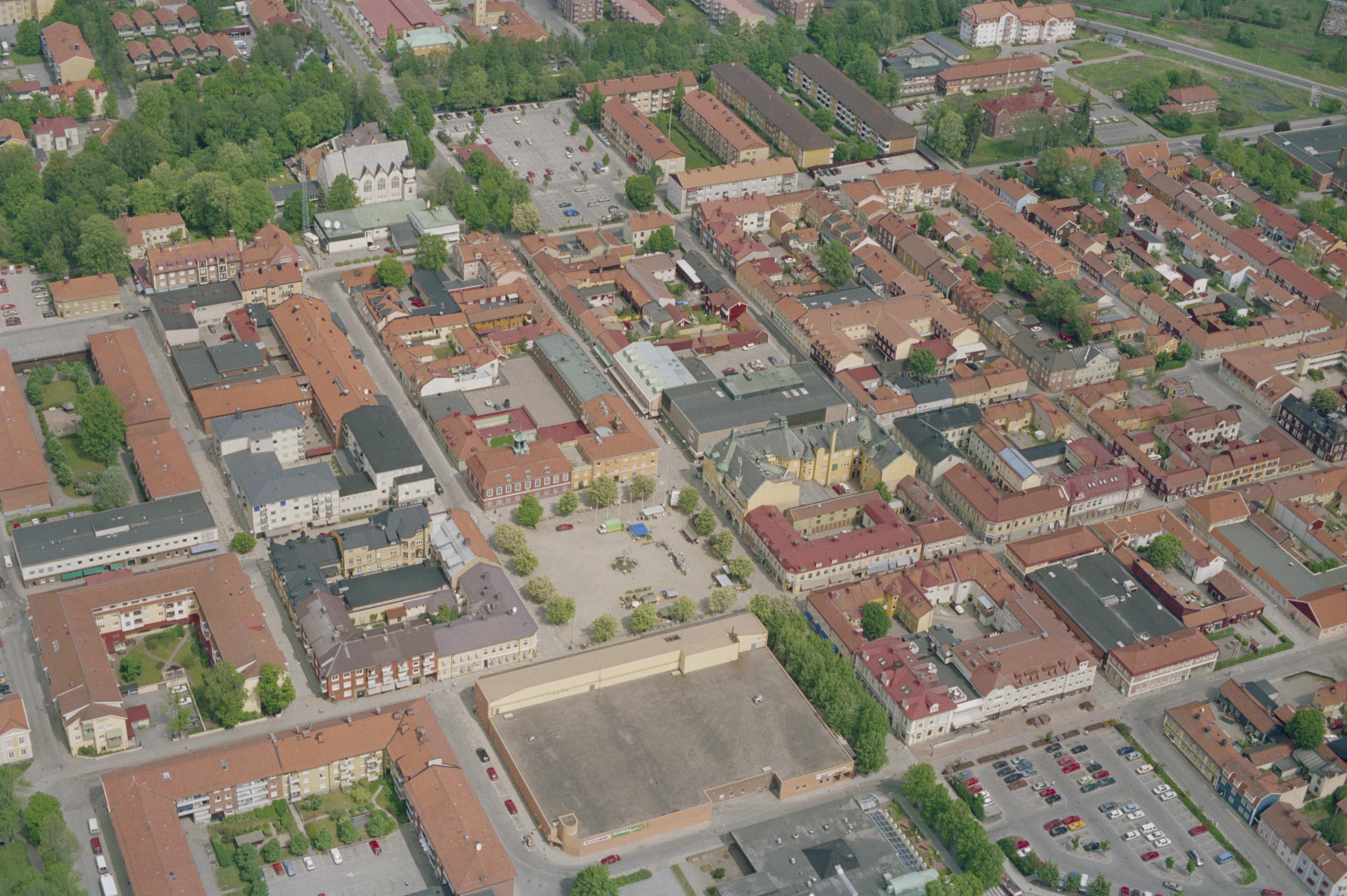 Beskrivning: Sala stad och stadskärna RAÄnr Sala stad 137:1. Lillån längs bildens övre del. Bilden är tagen mot (väderstreck): NNO