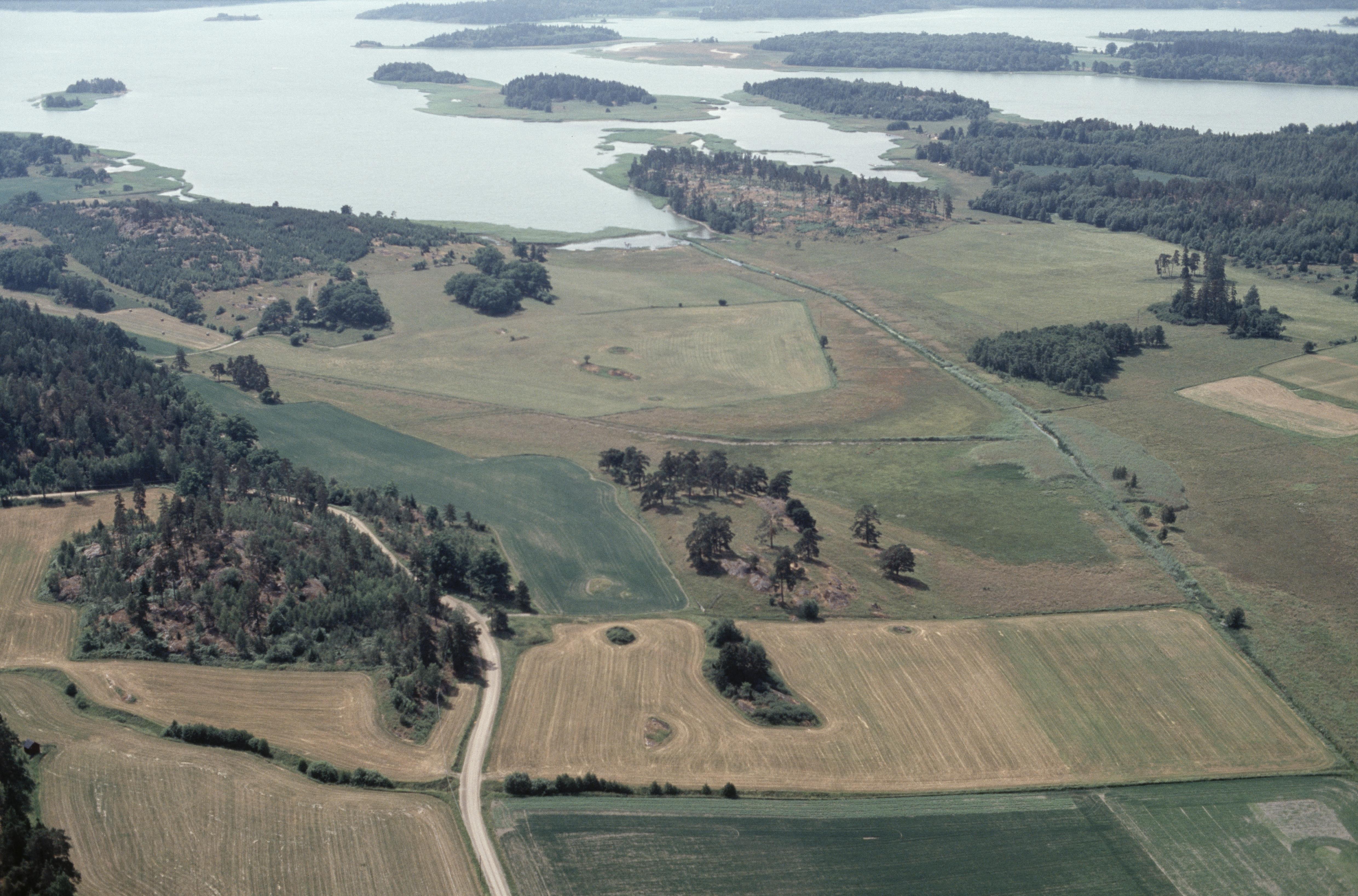 Beskrivning: Mörkö, västra delen. Kålsöfjärden i bildens övre del, Slessberget till vänster med fornborg RAÄnr Mörkö 24:1. Bilden är tagen mot (väderstreck): SSV