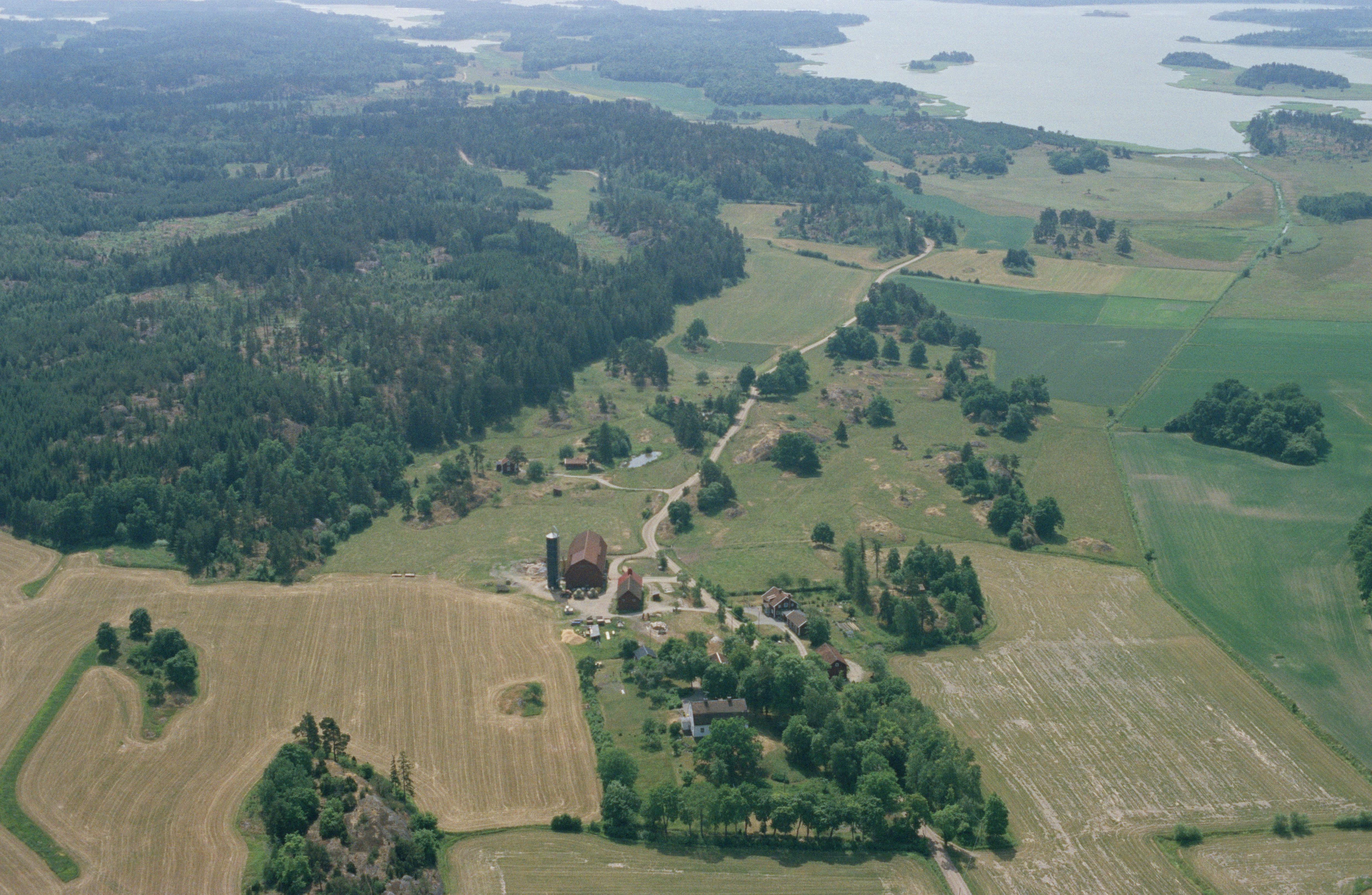 Beskrivning: Mörkö, västra delen. Kålsöfjärden i bildens övre del, Slessberget uppe till vänster med fornborg RAÄnr Mörkö 24:1. Bilden är tagen mot (väderstreck): SSO