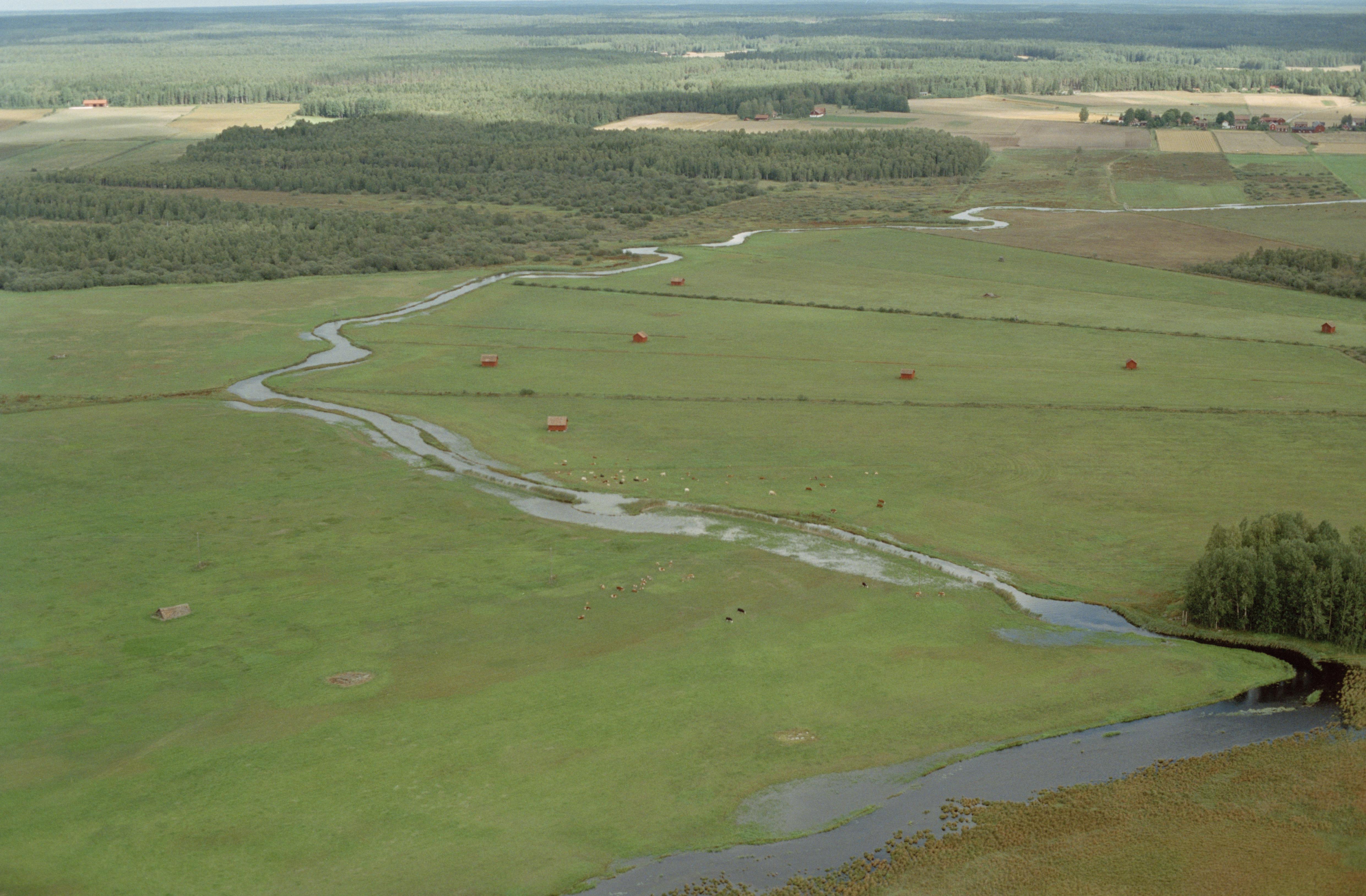 Beskrivning: Våtmarksområdet Nötmyran i Svartåns dalgång. Uppe till höger färdväg Smäckvägen mot bro RAÄnr Västerfärnebo 314:1-2 vid Hedbo by. Bilden är tagen mot (väderstreck): Ö