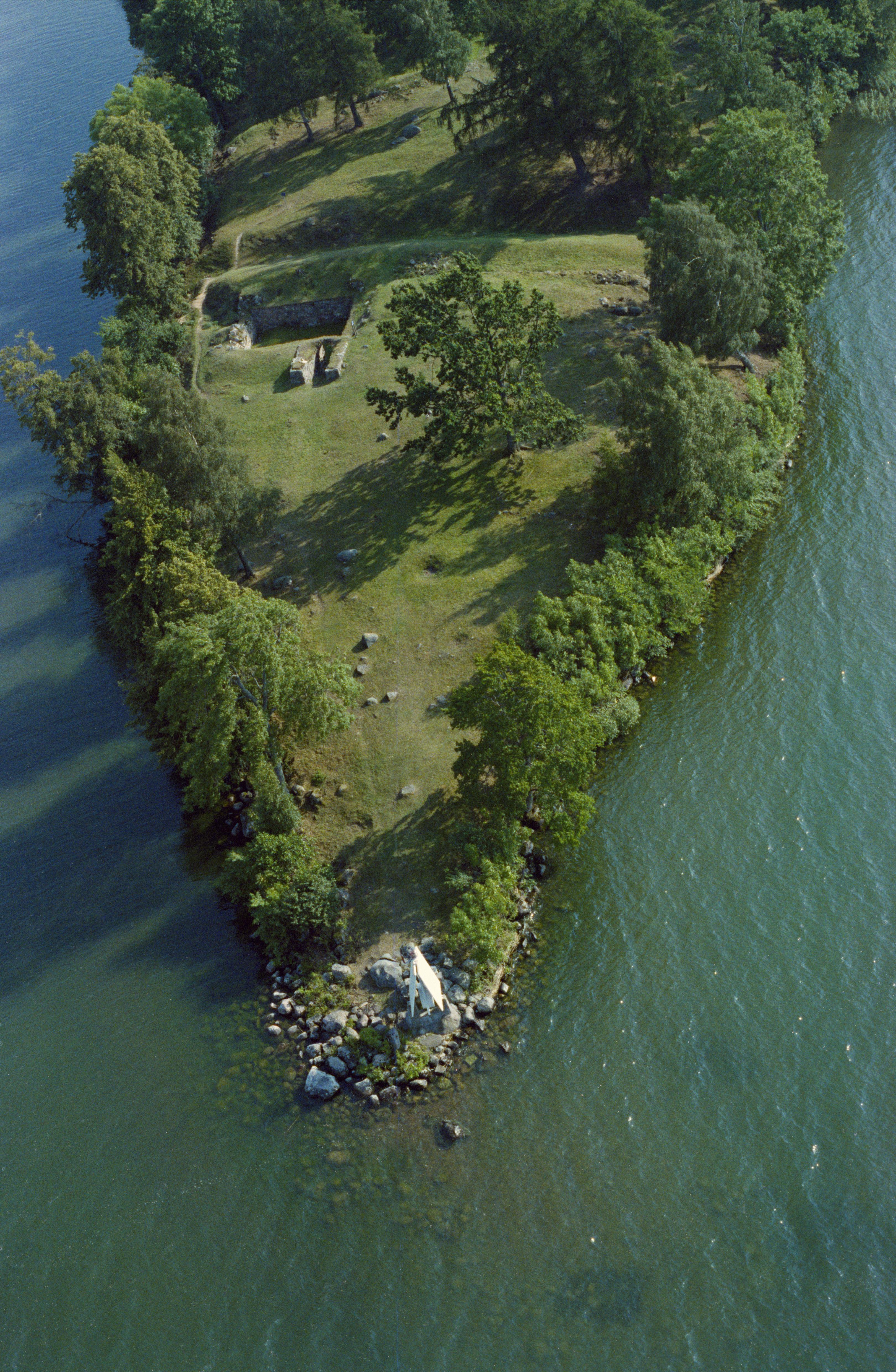 Beskrivning: Borgområde med lämningar efter en borg och två husgrunder efter den Heliga Birgitta bostad RAÄnr Ekebyborna 29:1 på en udde vid sjön Boren. Bilden är tagen mot (väderstreck): S