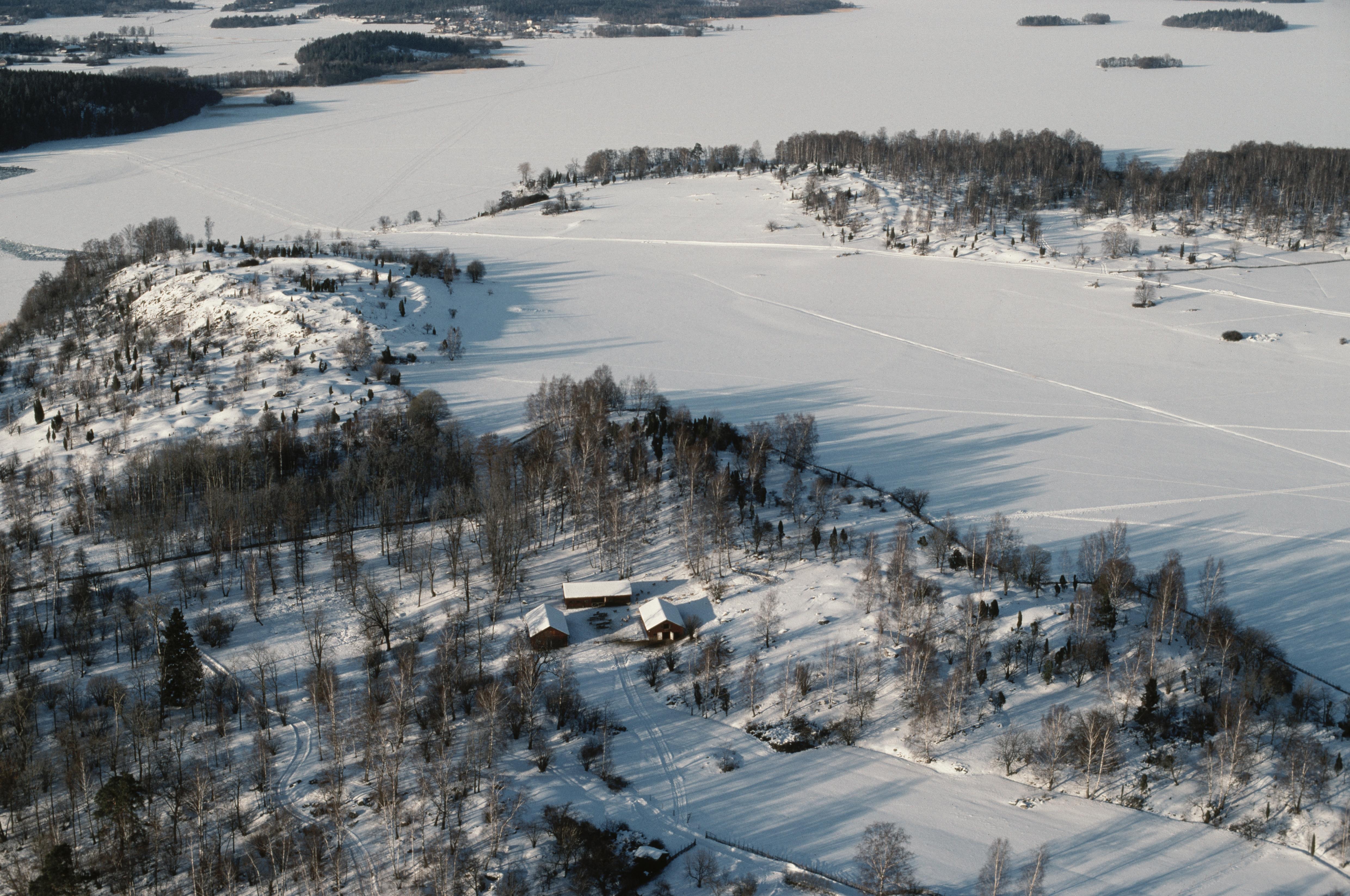 Beskrivning: Fornlämningsområdet Birka på Björkö i Mälaren. Kvarnbacka i bildens nedre del. Till vänster fornborg Borg RAÄnr Adelsö 34:1 och gravfält Borgs hage Adelsö 35:1. Över bildens mitt bo- och gravplats Hemlanden och Svarta jorden RAÄnr Adelsö 118:1 vid Stadsvallen Adelsö 119:1-2. Bilden är tagen mot (väderstreck): NNV