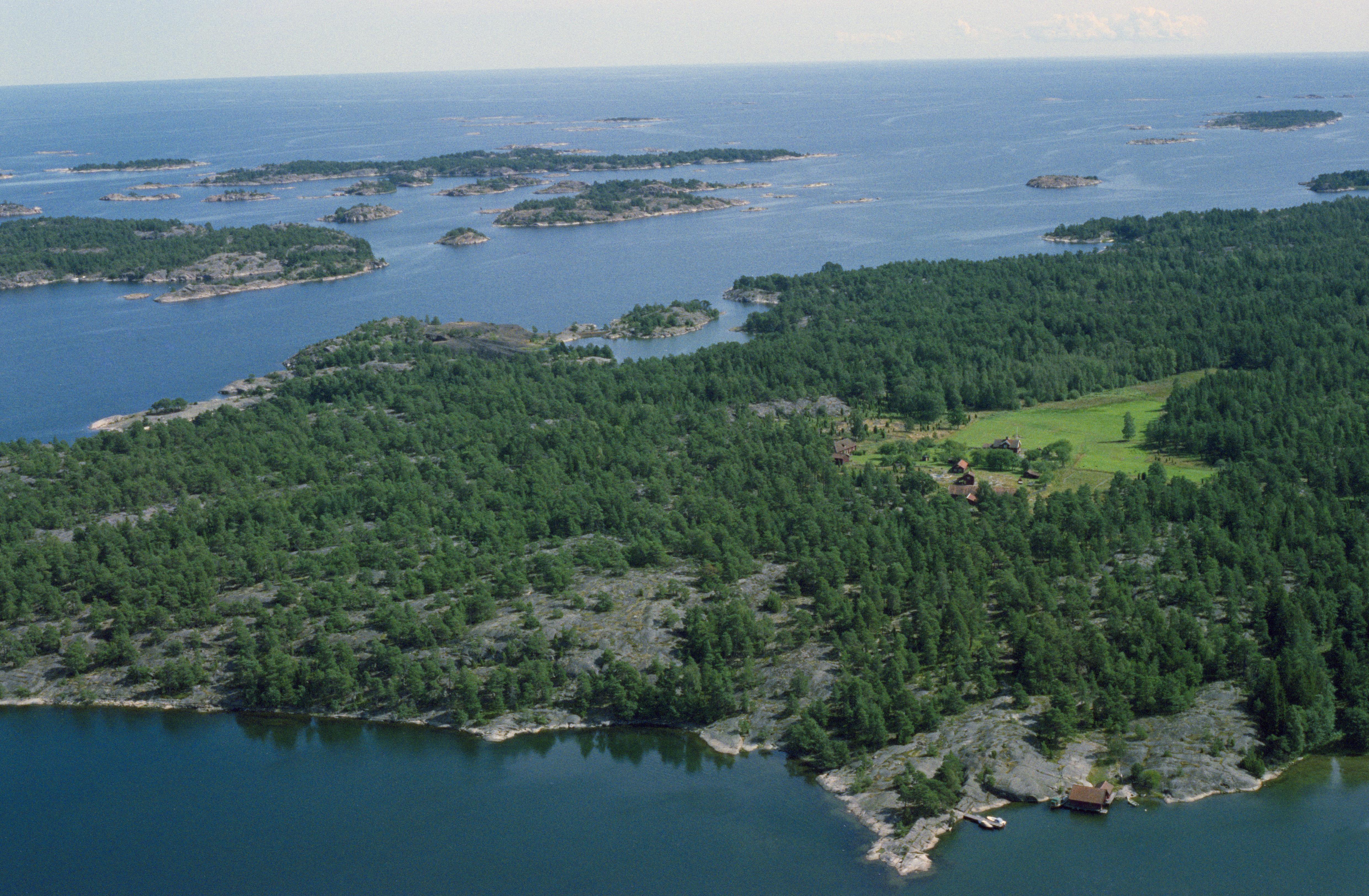 Beskrivning: Gryts skärgård. Fångö, norra delen. Bodalen by. I bildens övre del Fångö gruva RAÄnr Gryt 186:1 på Gruvholmen och Gubbön i Gryts naturreservat. Bilden är tagen mot (väderstreck): SV