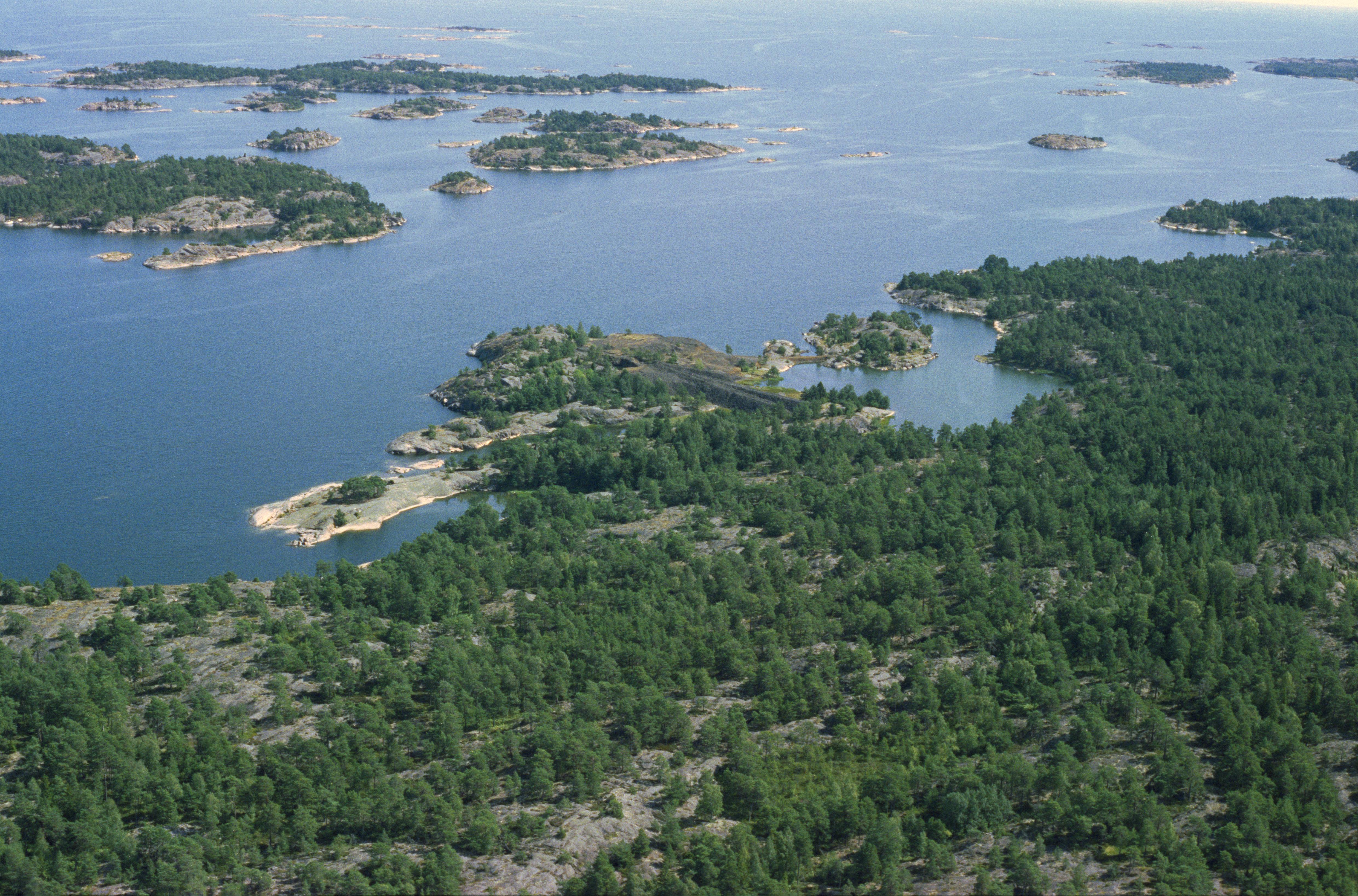 Beskrivning: Gryts skärgård. Ön Fångö, nordöstra delen. Vid bildens mitt Fångö gruva RAÄnr Gryt 186:1 på Gruvholmen. I bildens övre del Gubbön i Gryts naturreservat. Bilden är tagen mot (väderstreck): OSO