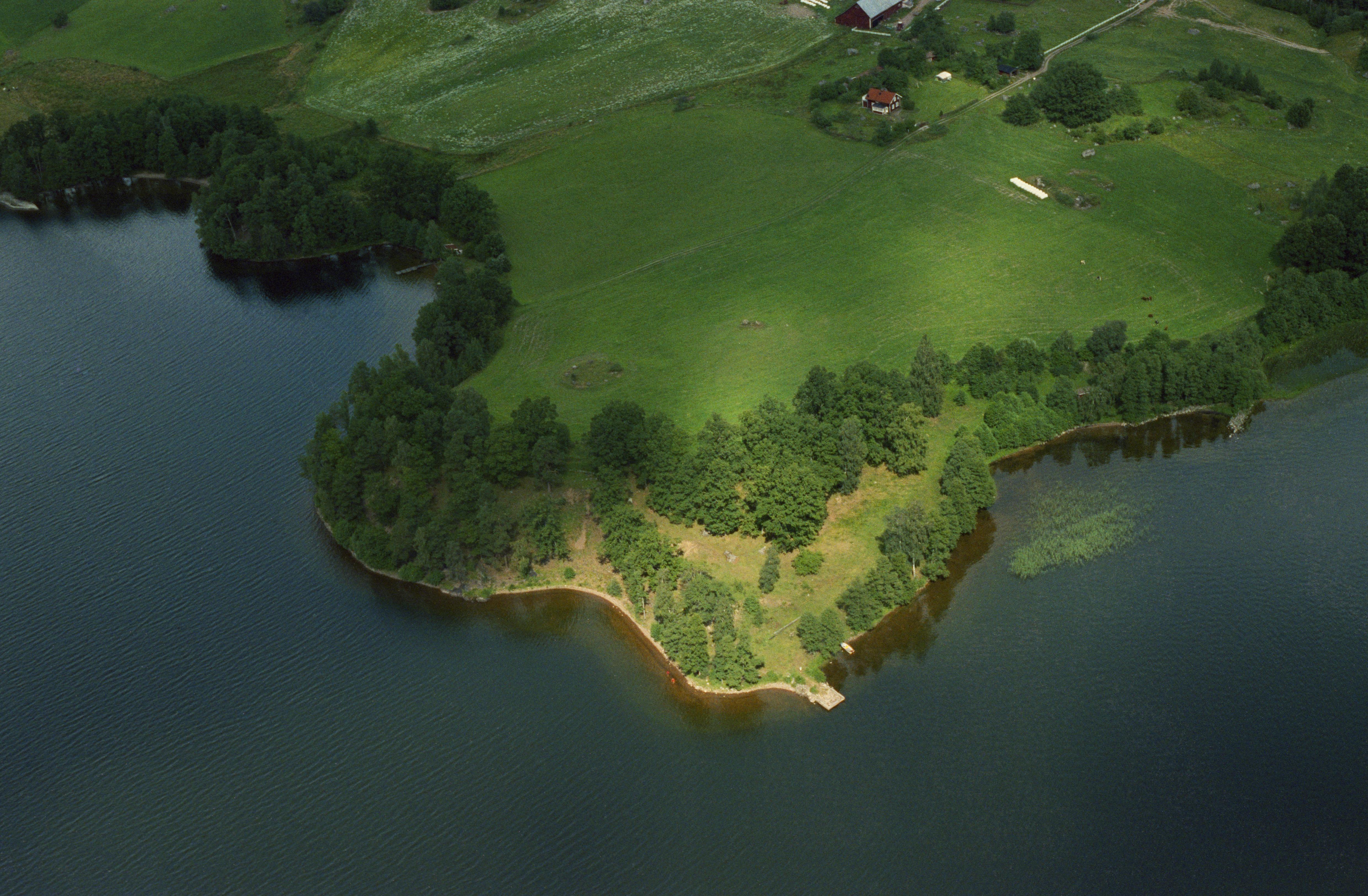 Beskrivning: Jätteudden vid sjön Åsunden. Gravfält med skeppssättning, och domarring RAÄnr Horn 15:1. Bilden är tagen mot (väderstreck): N
