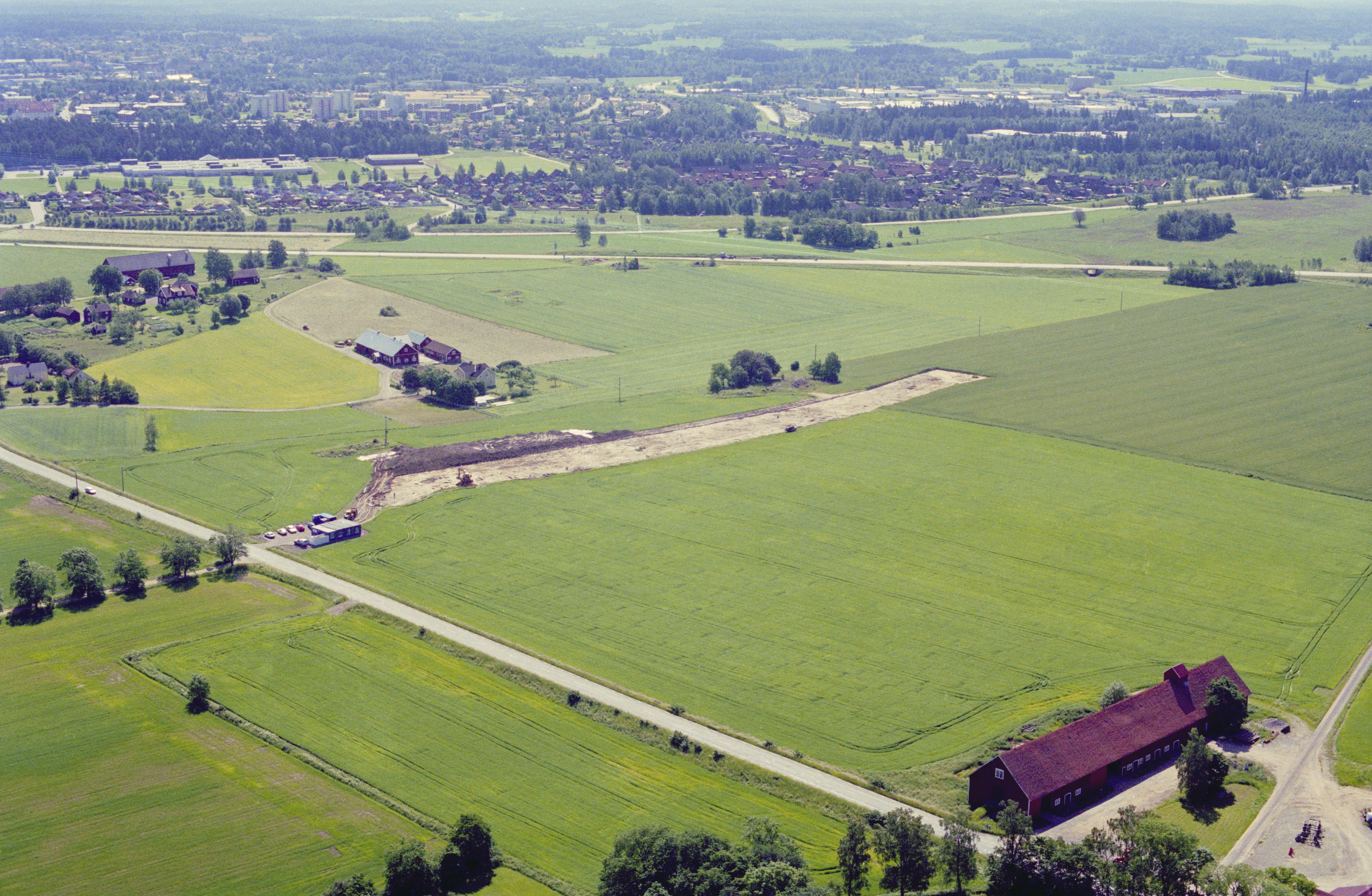 Beskrivning: Arkeologisk undersökning vid gränsen mellan socknen Högby och Mjölby innan bygging av ny väg. Boplats RAÄnr Högby 89:1 m.fl. Bilden är tagen mot (väderstreck): VNV