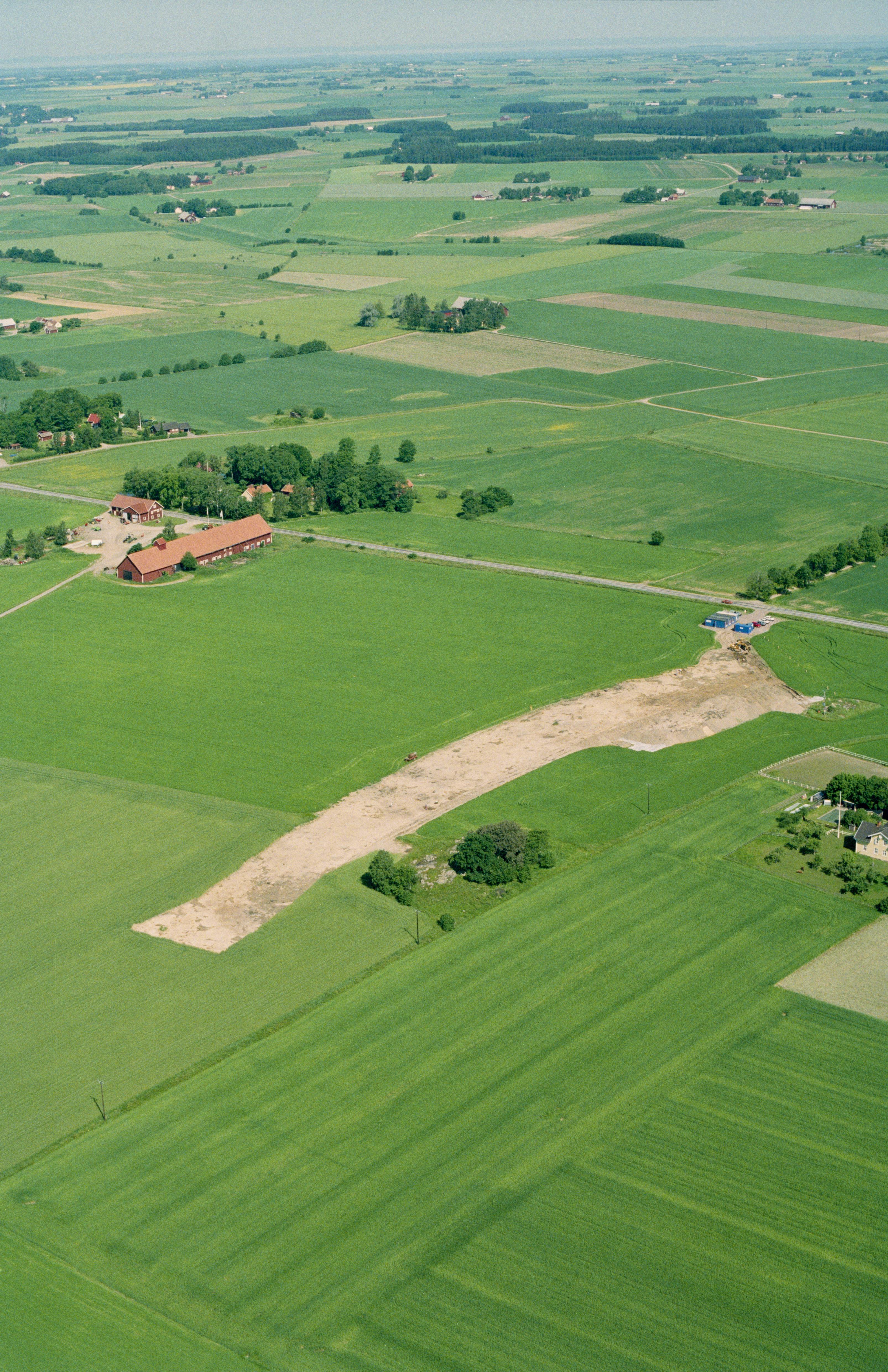 Beskrivning: Arkeologisk undersökning vid gränsen mellan socknen Högby och Mjölby innan bygging av ny väg. Boplats RAÄnr Högby 89:1 m.fl. Bilden är tagen mot (väderstreck): SO