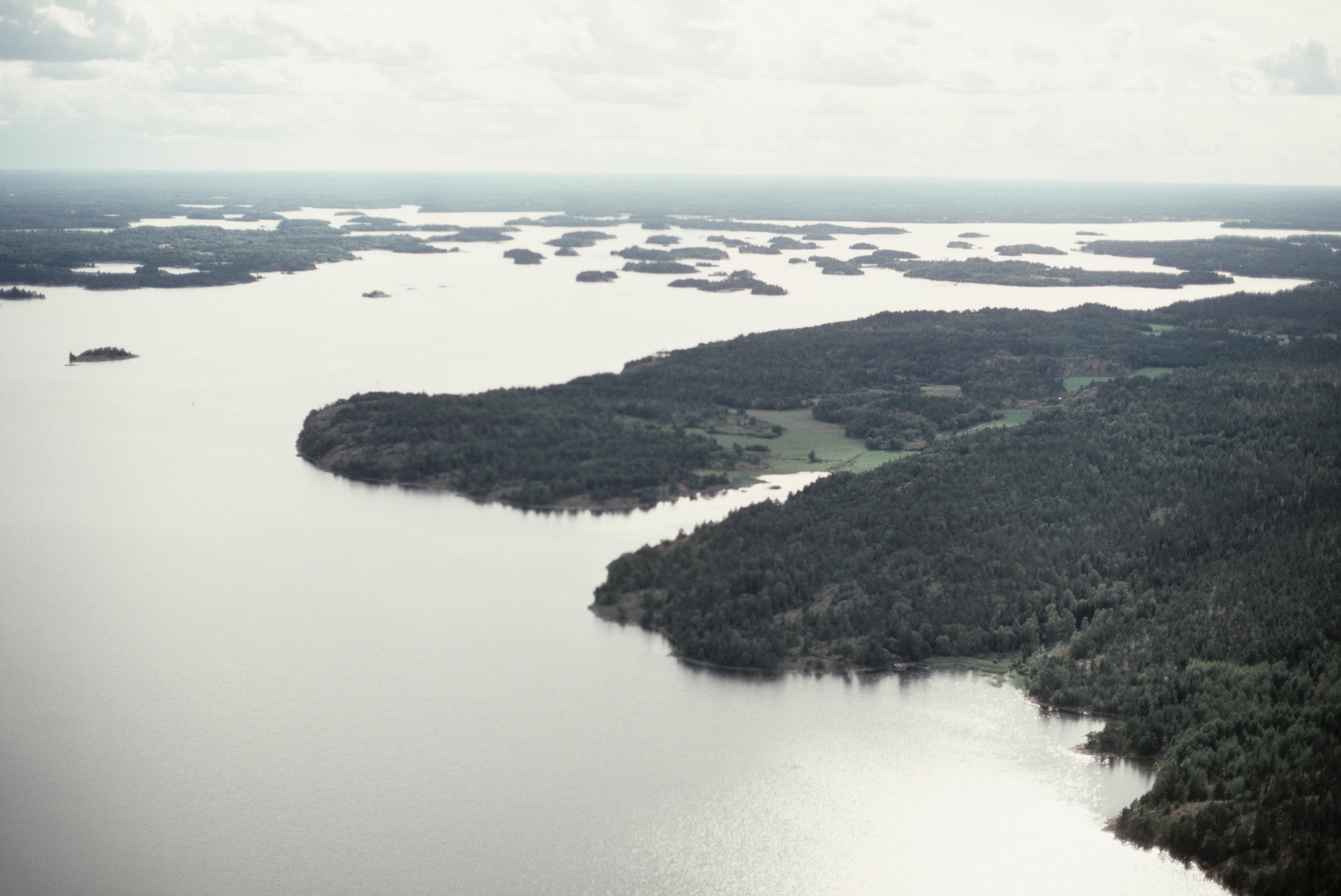 Beskrivning: Korpetorps by vid gränsen mot socknet Sankt Anna i Lönshuvudfjärden. Vårdkase RAÄnr Rönö 1:1 på udden Lönshuvud vid bildens mitt. Vid Korpetorp boplatser Rönö 8:1, 33:1, 34:1, 35:1 m.fl. Bilden är tagen mot (väderstreck): SV