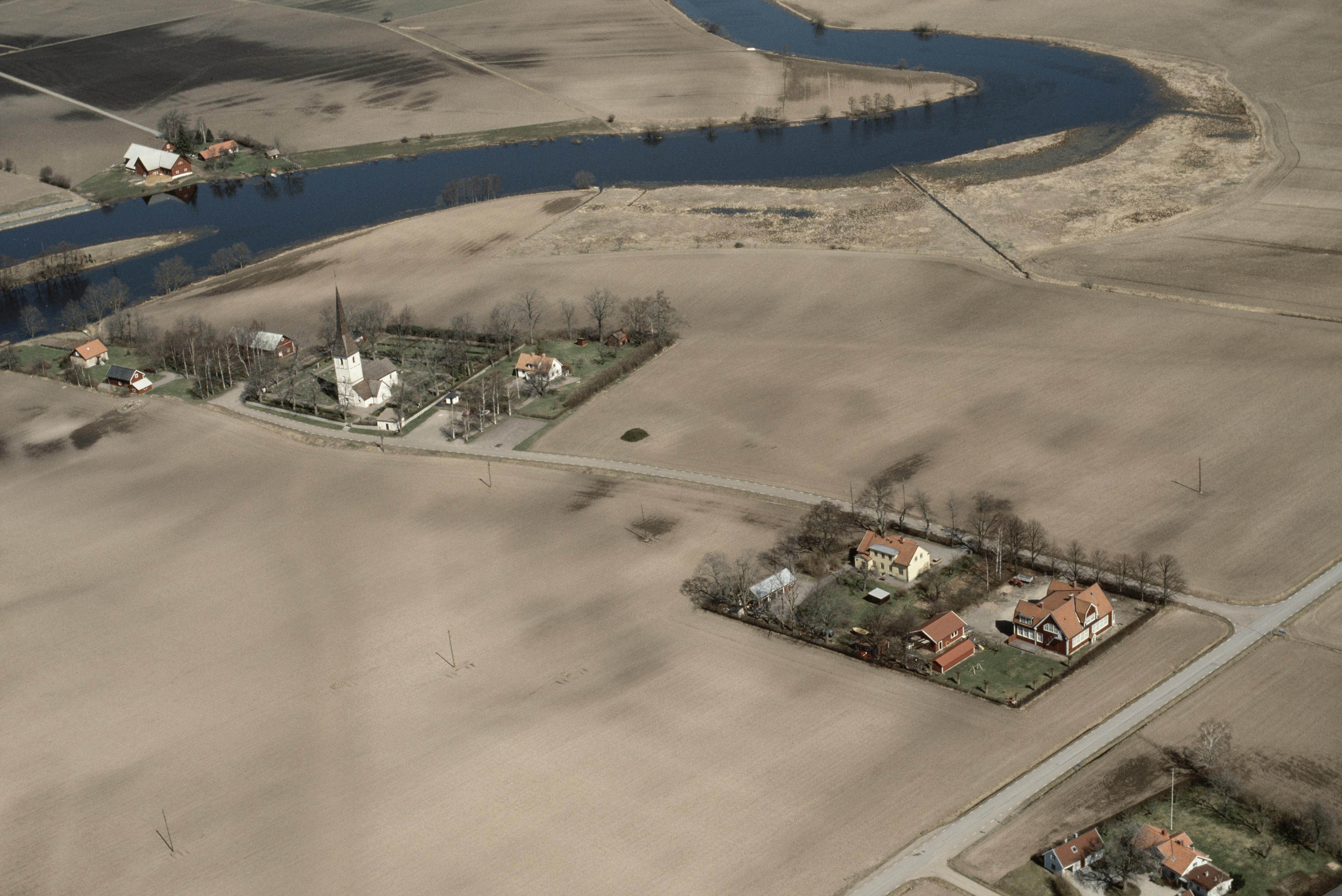 Beskrivning: Svartåns dalgång. Kaga kyrka vid Svartån. Bilden är tagen mot (väderstreck): NO