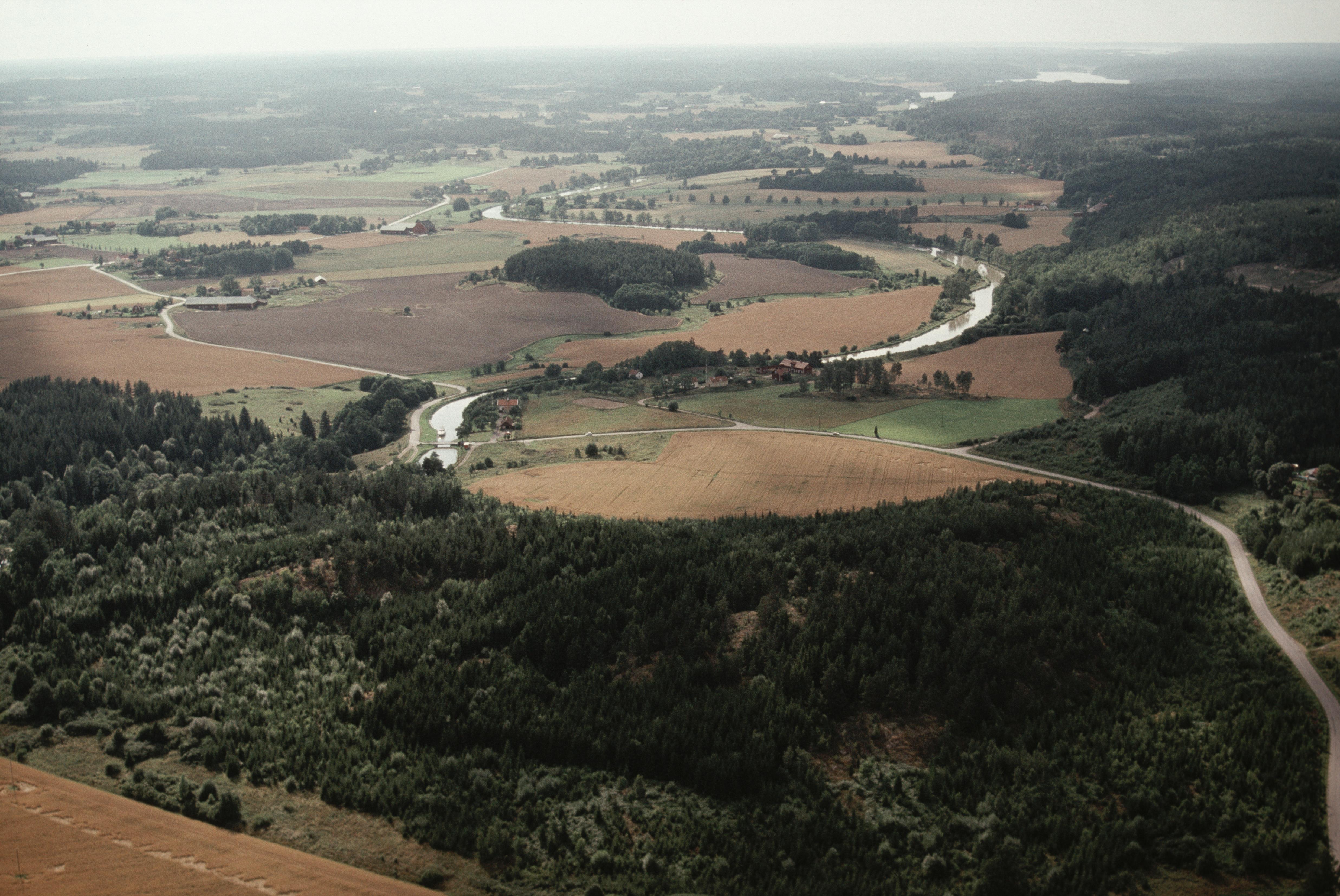 Beskrivning: Göta kanal. Vänneberga gård och kanalmärke RAÄnr Drothem 281:1 vid bildens mitt. I bildens övre del Västra Husby socken. Bilden är tagen mot (väderstreck): V