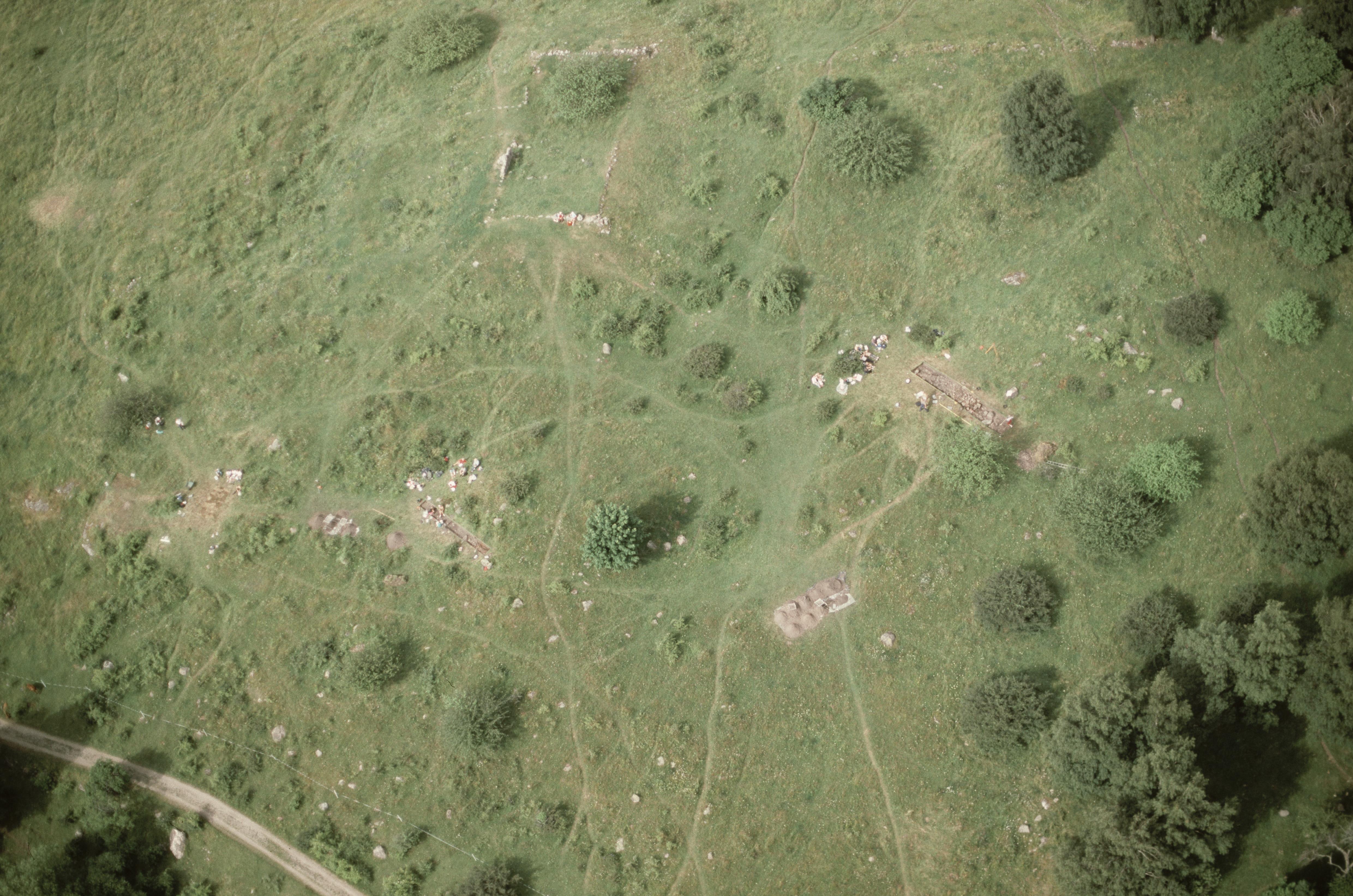 Beskrivning: Fornlämningsområdet Hovgården RAÄnr Adelsö 46:2 på Adelsön vid Hovgårdsfjärden i Mälaren. Arkeologisk undersökning i Alsnö hus RAÄnr Adelsö 47:1, stensättningar Adelsö 236 och 237 m.fl. Bilden är tagen mot (väderstreck): V