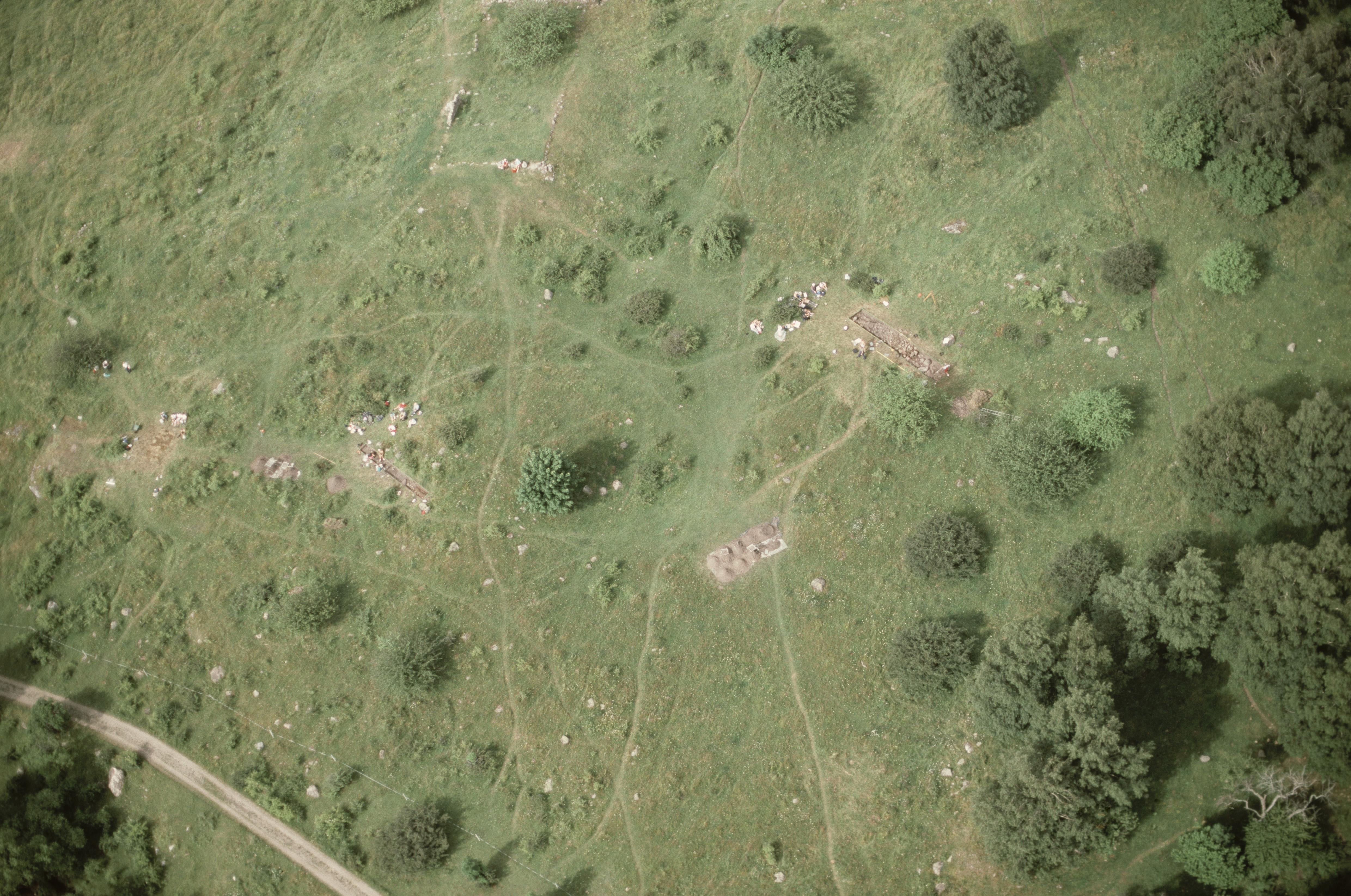 Beskrivning: Fornlämningsområdet Hovgården RAÄnr Adelsö 46:2 på Adelsön vid Hovgårdsfjärden i Mälaren. Arkeologisk undersökning i Alsnö hus RAÄnr Adelsö 47:1, stensättningar Adelsö 236 och 237 m.fl. Bilden är tagen mot (väderstreck): V