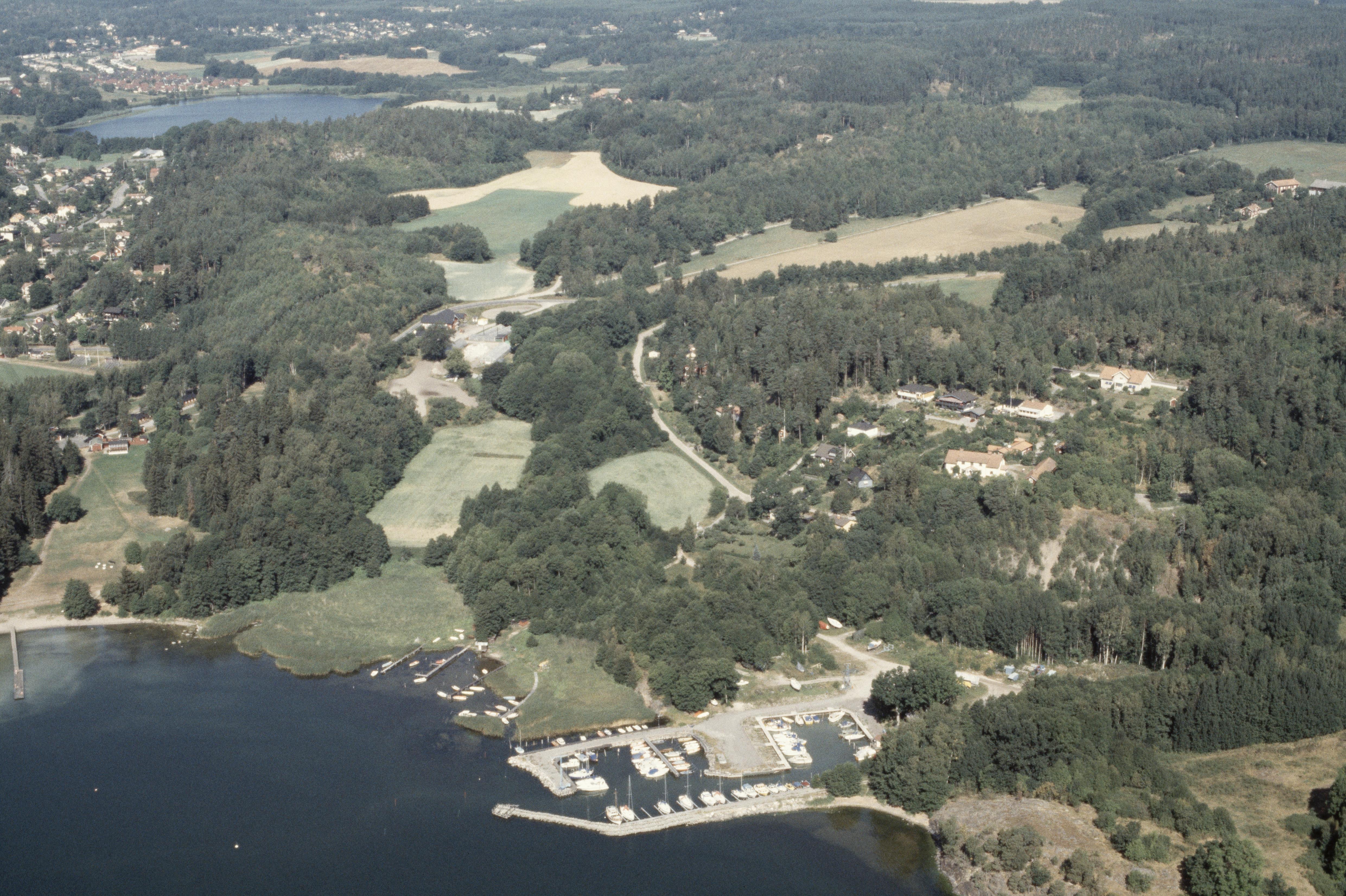 Beskrivning: Bodaviken i Bråviken. Östra delen av tätorten Nere till vänster boplats RAÄnr Krokek 1:1 m.fl. vid Fagervik och Marmorbruket. I bildens övre del Kolmården. Bilden är tagen mot (väderstreck): NV