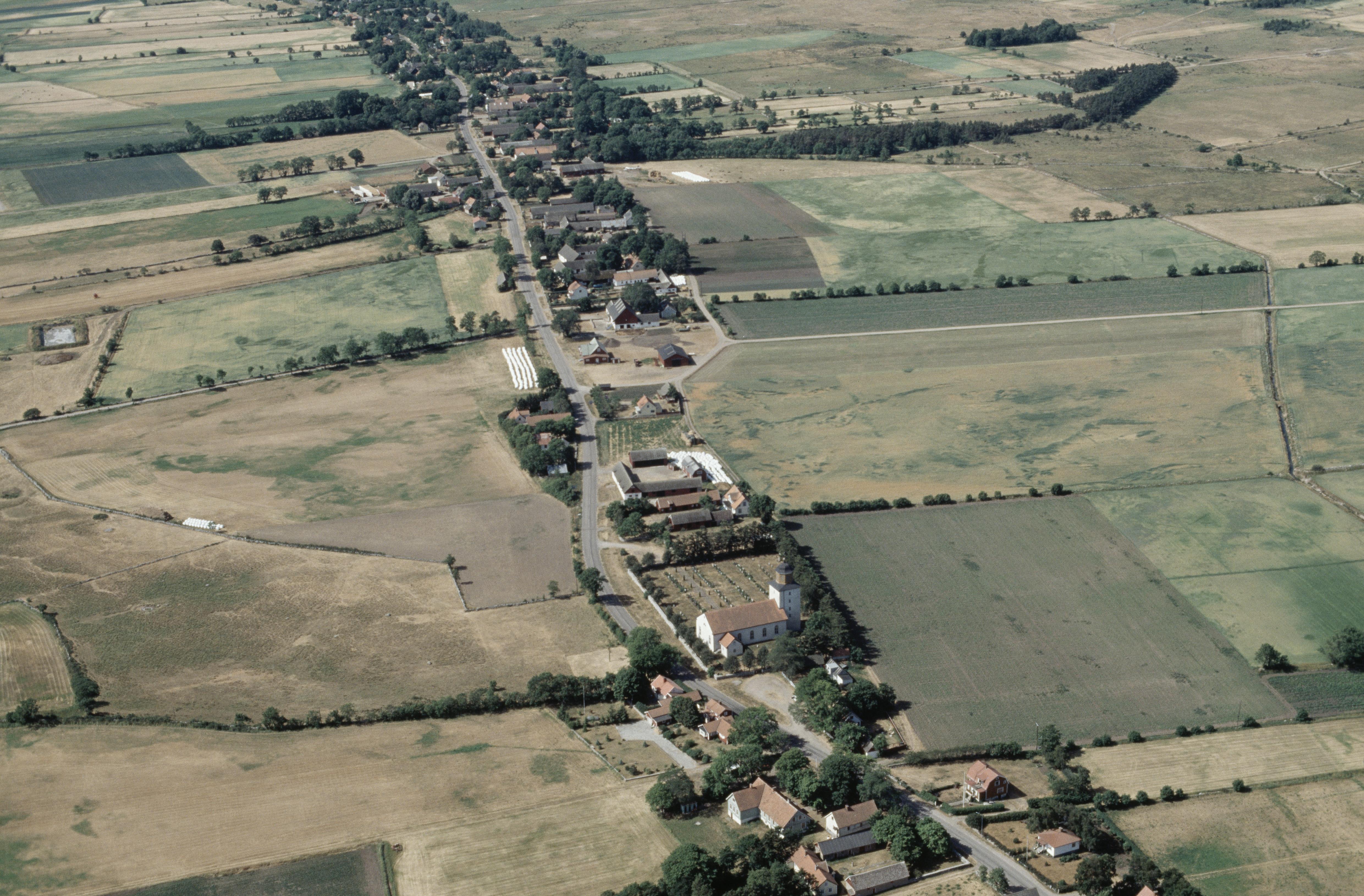 Alvaret. Stenåsa kyrka och kyrkby. Bilden är tagen mot (väderstreck): S