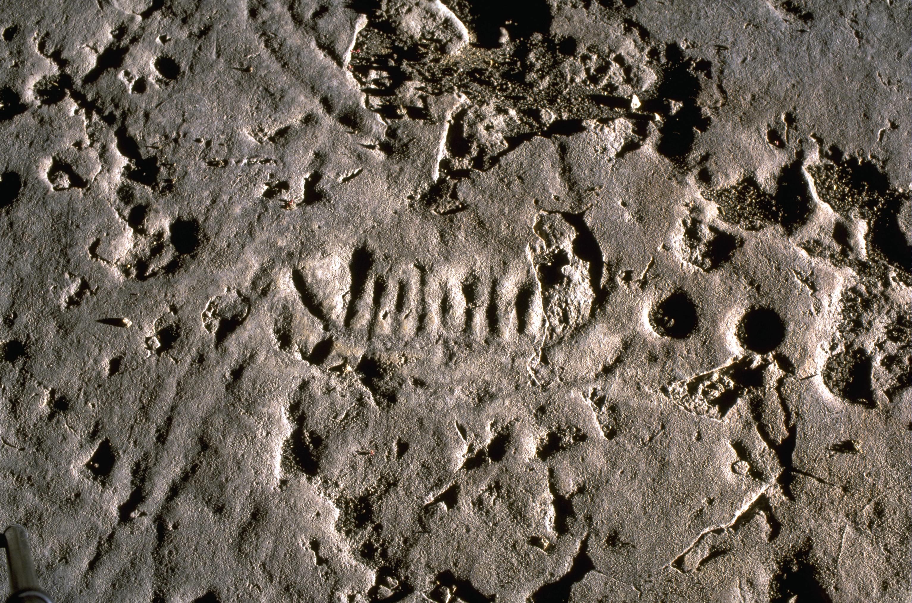 Skeppsfigur och skålgropar. Yta med materialförlust.