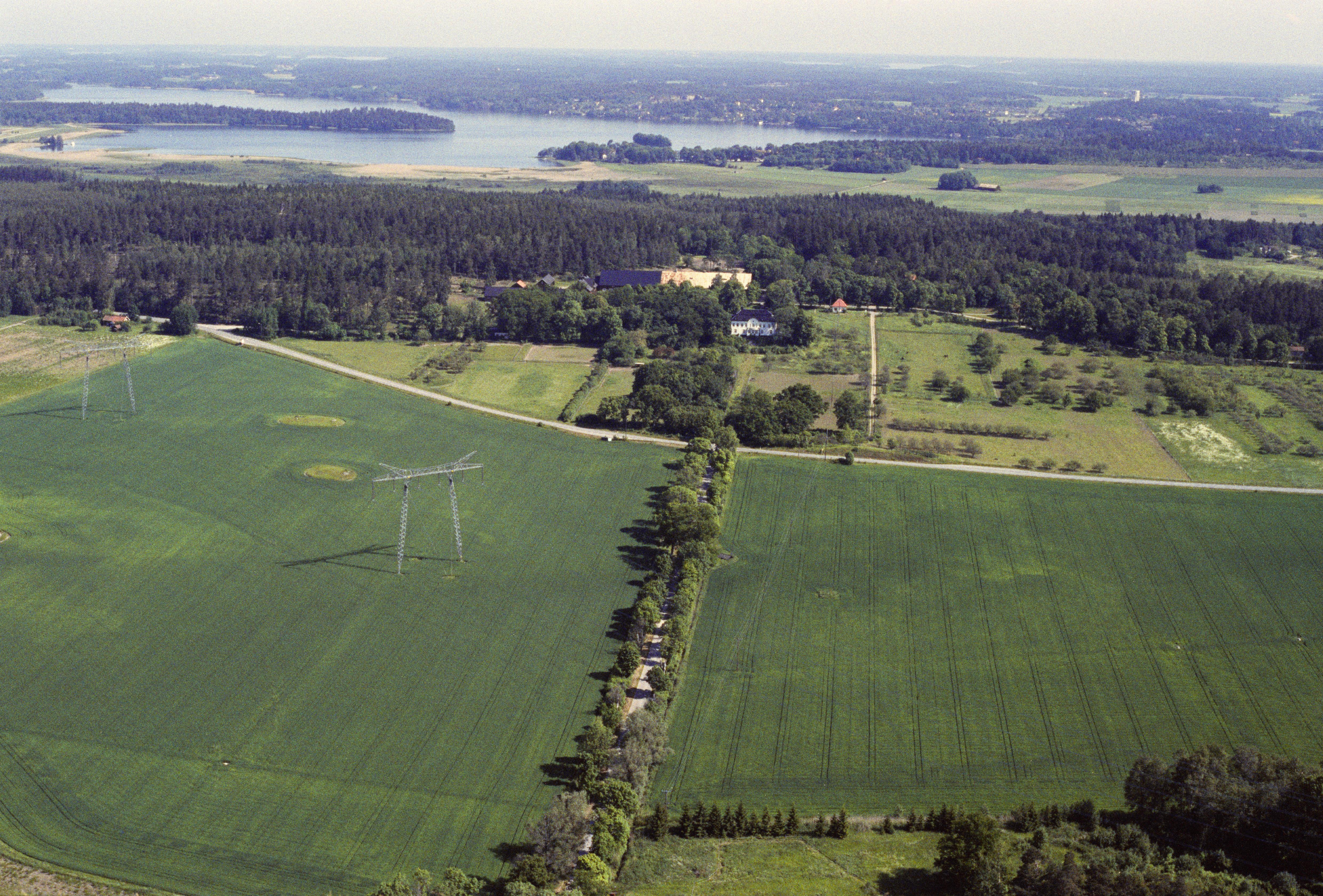 Beskrivning: Ekerön i Mälaren. Vid bildens mitt Rastaborgs slott (även Rastaborgs herrgård). I bildens övre del fjärden Långtarmen mot Sånga socken. Bilden är tagen mot (väderstreck): N
