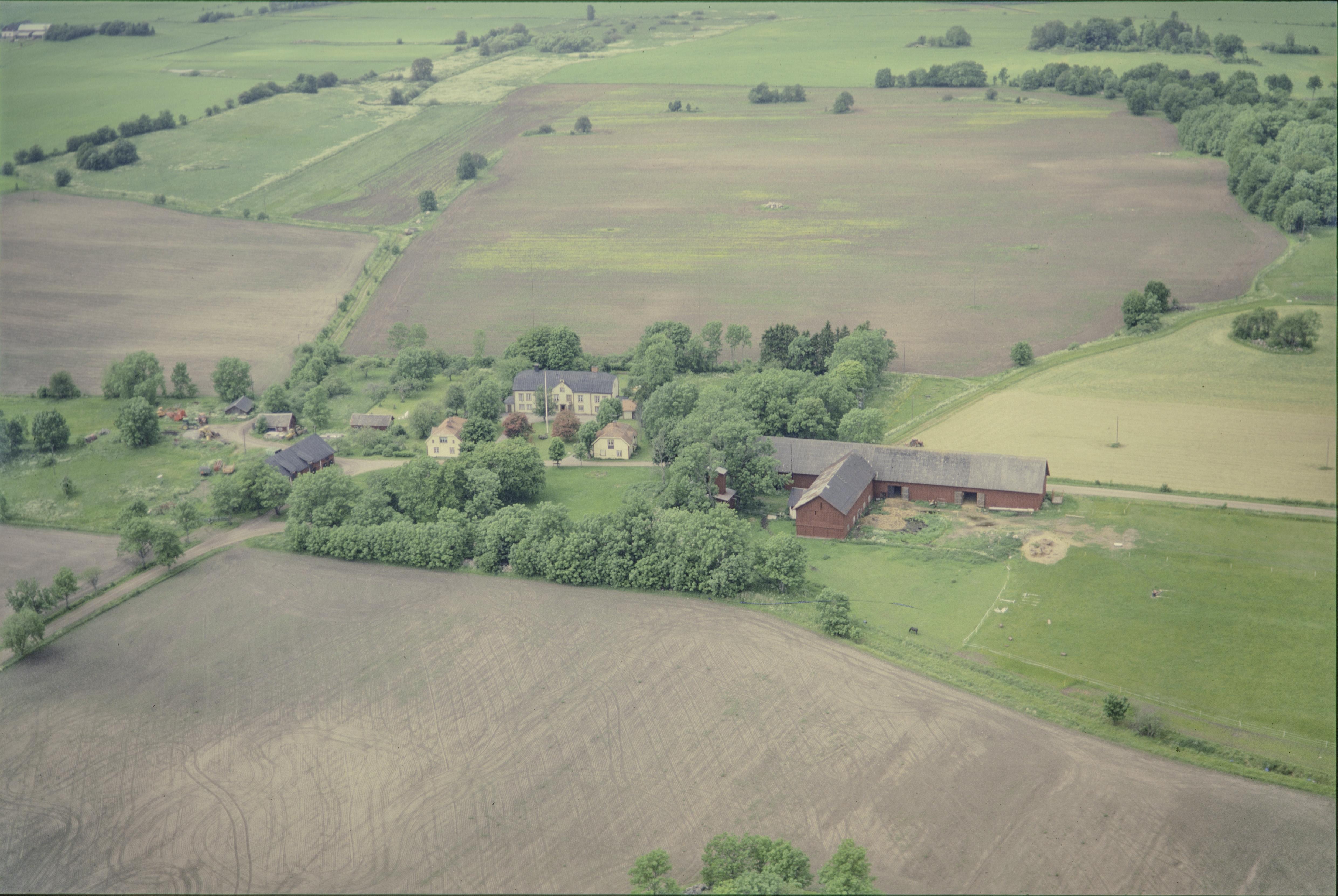 Beskrivning: Vämlinge herrgård / Vämlinge gård. Gravfält RAÄnr Estuna 47:1 och 48:1 i bildens övre del. Bilden är tagen mot (väderstreck): VSV