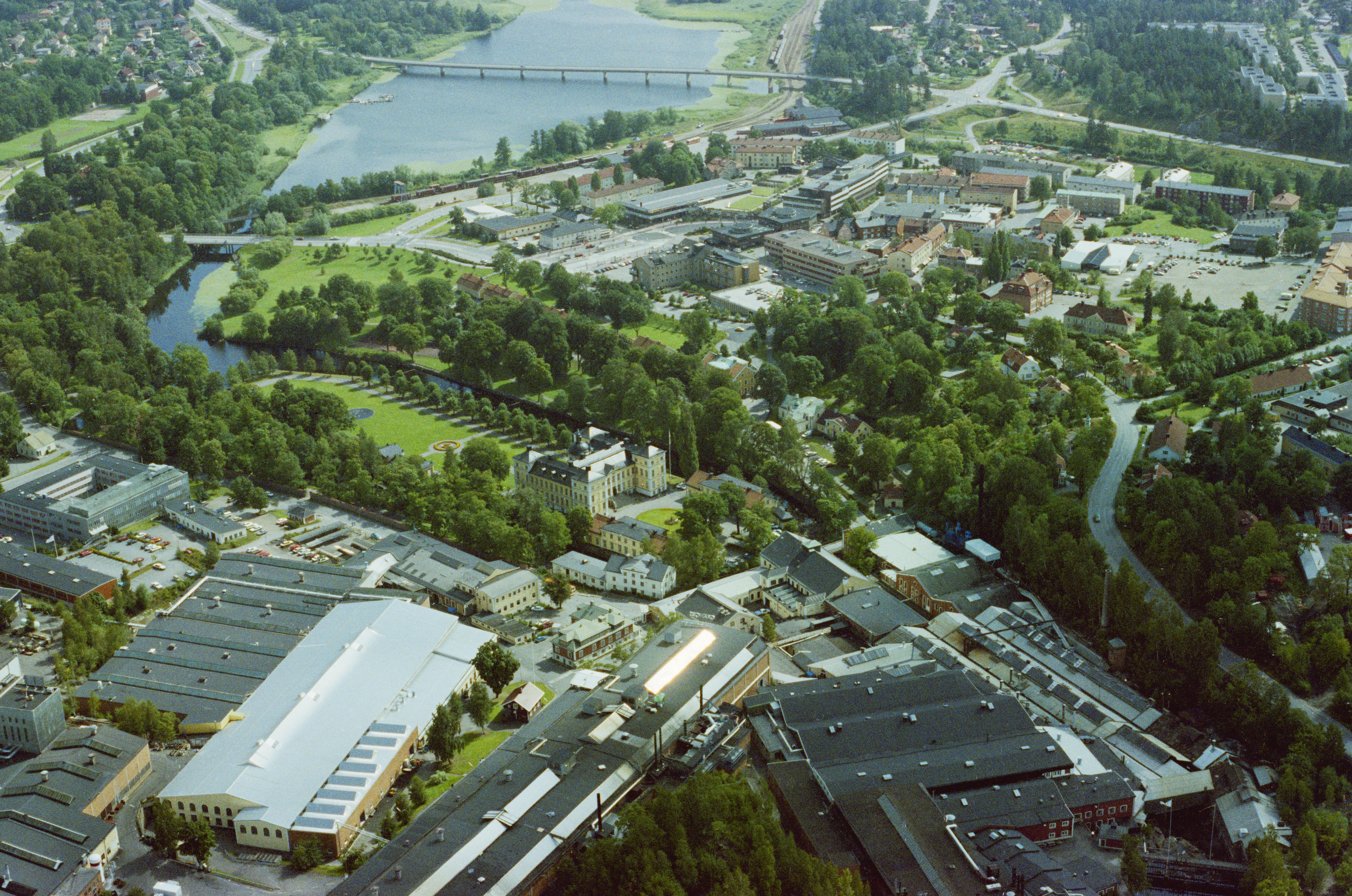 Beskrivning: Finspångs tätort. Finspångs slott RAÄnr Risinge 88:1 vid bildens mitt. Bilden är tagen mot (väderstreck): SO