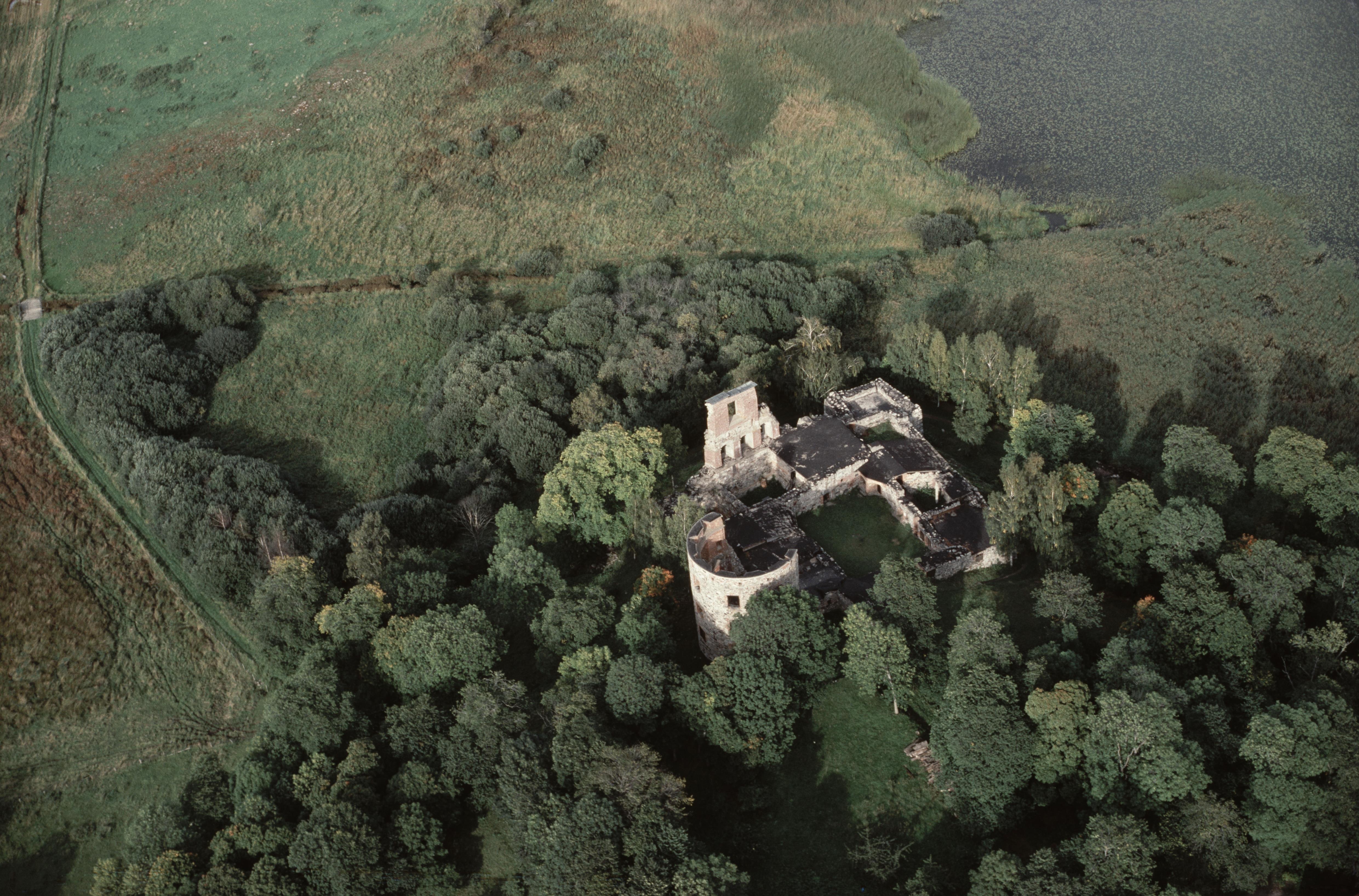 Beskrivning: Mörby slottsruin RAÄnr Fasterna 49:1 vid Mörbyviken i sjön Skedviken. Bilden är tagen mot (väderstreck): NO
