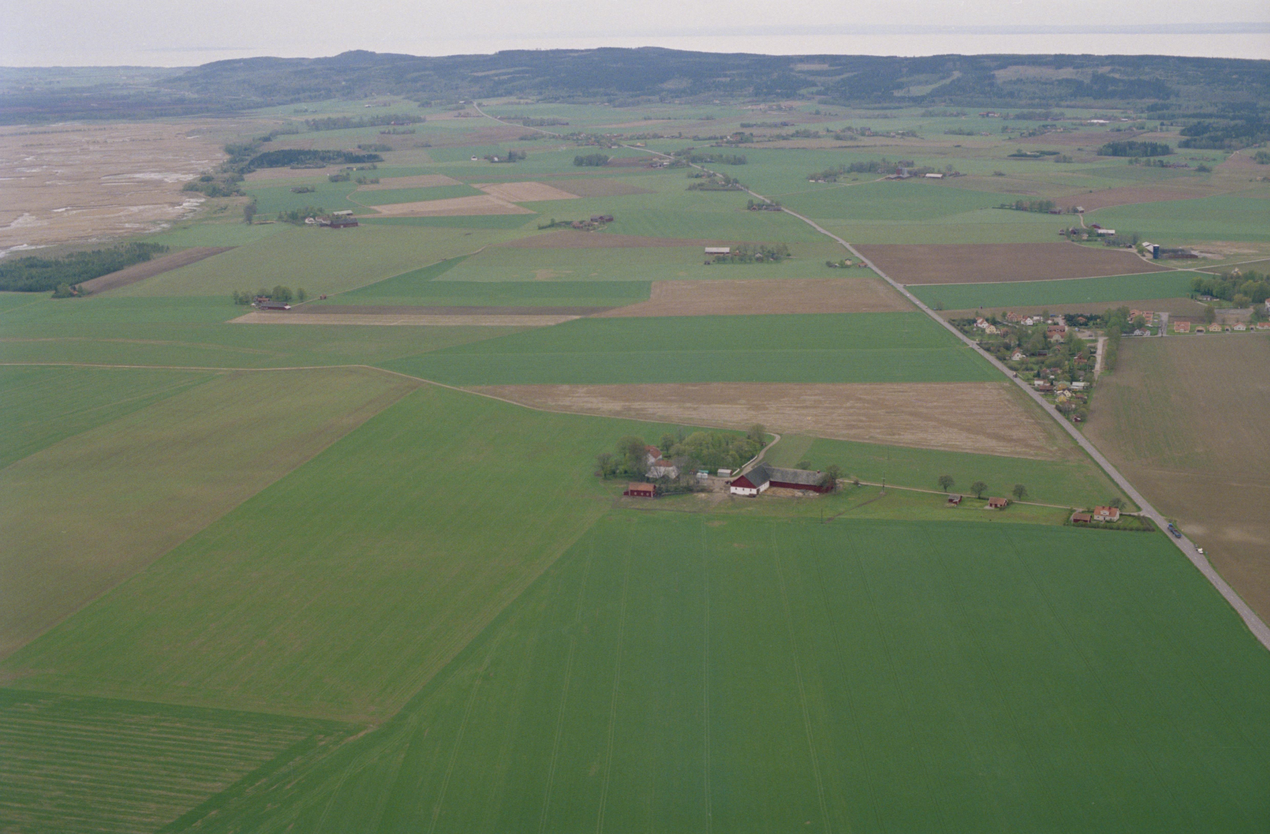 Beskrivning: Bytomt RAÄnr Källstad 25 vid gränsen mellan socknen Källstad (i bildens nedre del) och Rogslösa (i bildens övre del). Rogslösa kyrka och kyrkby uppe till höger. Bilden är tagen mot (väderstreck): SV
