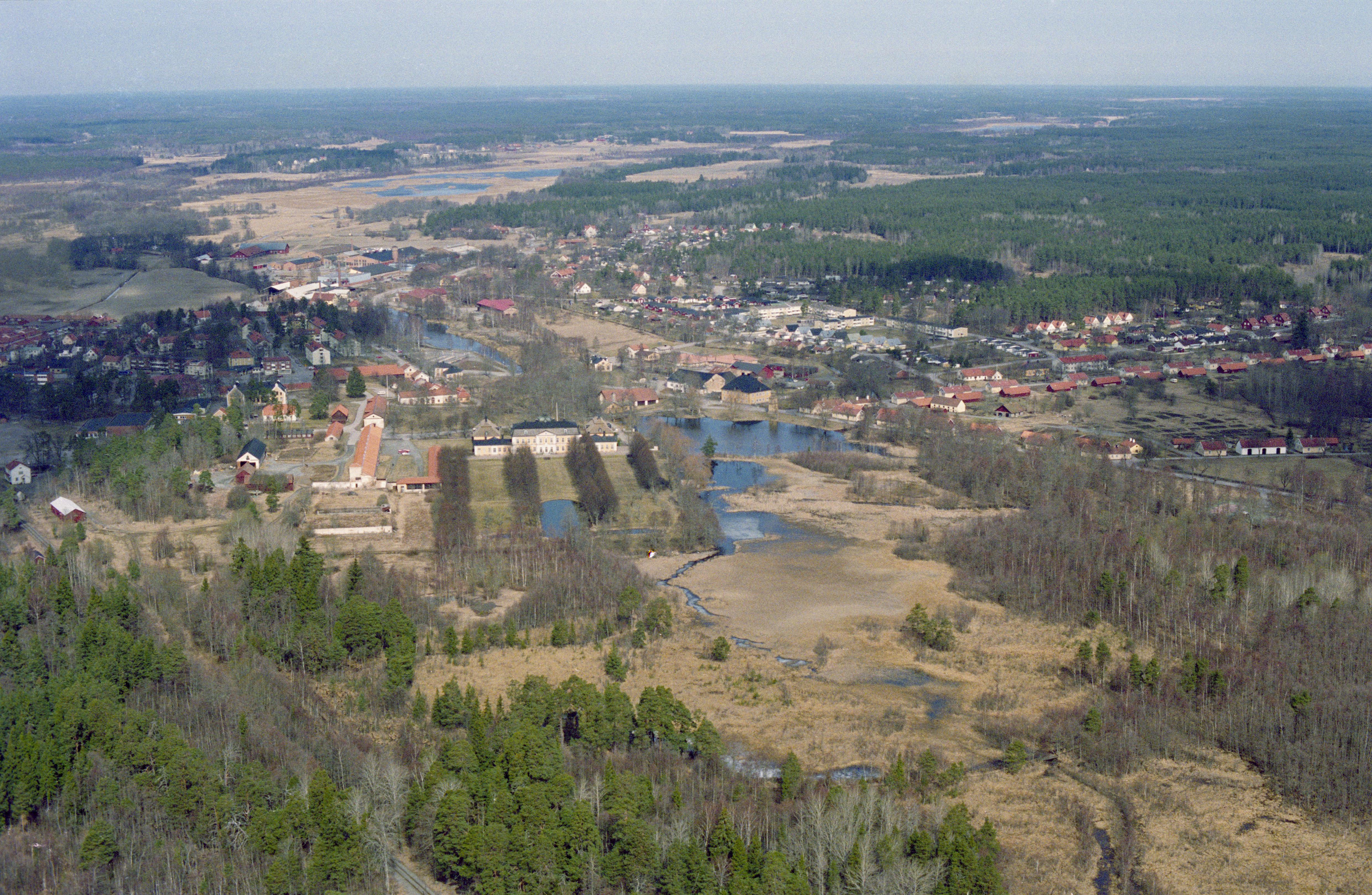 Beskrivning: Österbybruk vid Nerån och sjöarna Stordammen, Oppdammen, Sågdammen och Herrgårdsdammen. Bruksområde med herrgård och kyrka samt smedje-, kvarn-, hammar- och hyttlämningar m.m. RAÄnr Film 81:1. Bilden är tagen mot (väderstreck): N