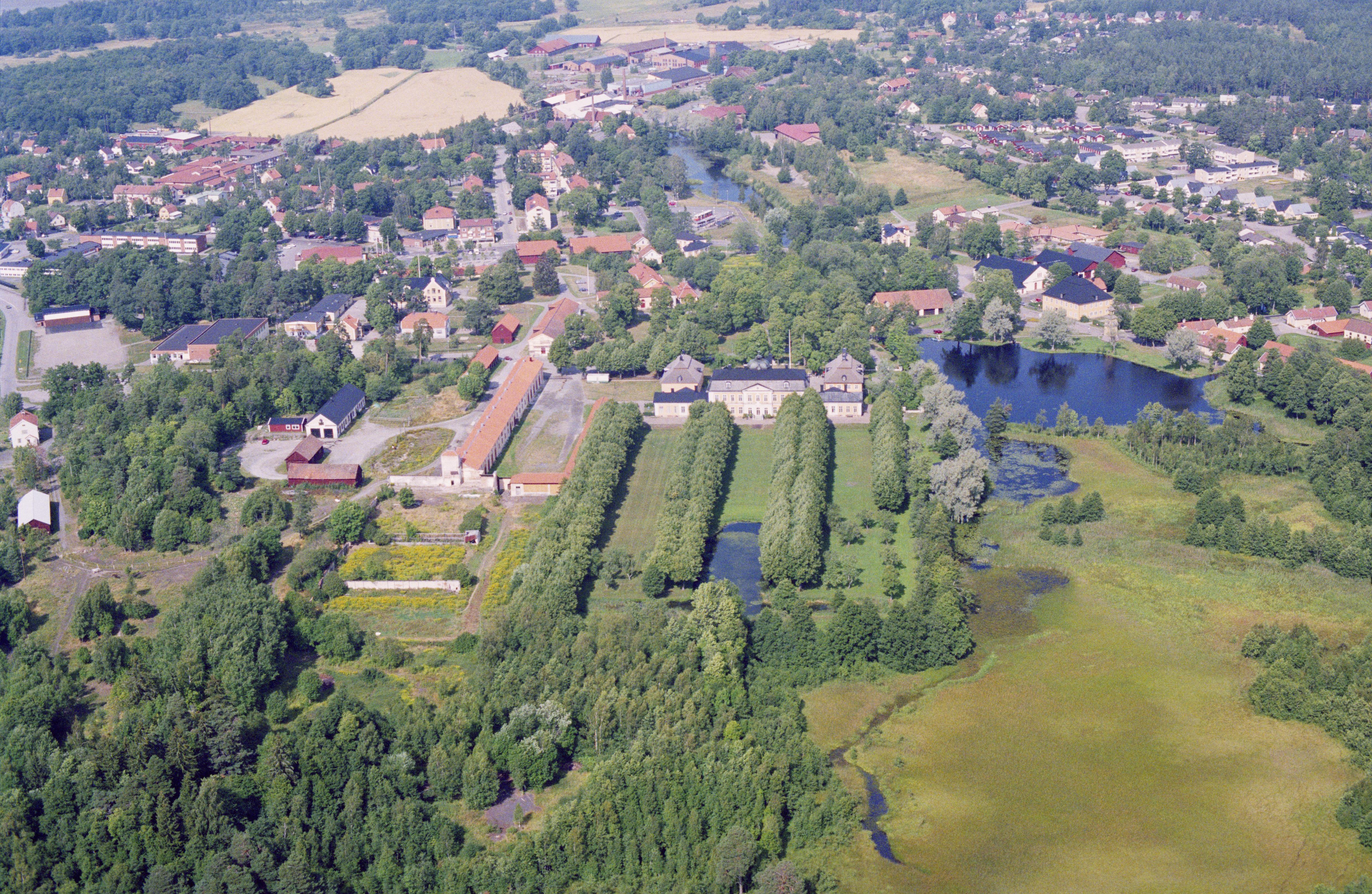 Beskrivning: Österbybruk vid Nerån och sjöarna Stordammen, Oppdammen, Sågdammen och Herrgårdsdammen. Bruksområde med herrgård och kyrka samt smedje-, kvarn-, hammar- och hyttlämningar m.m. RAÄnr Film 81:1. Bilden är tagen mot (väderstreck): N