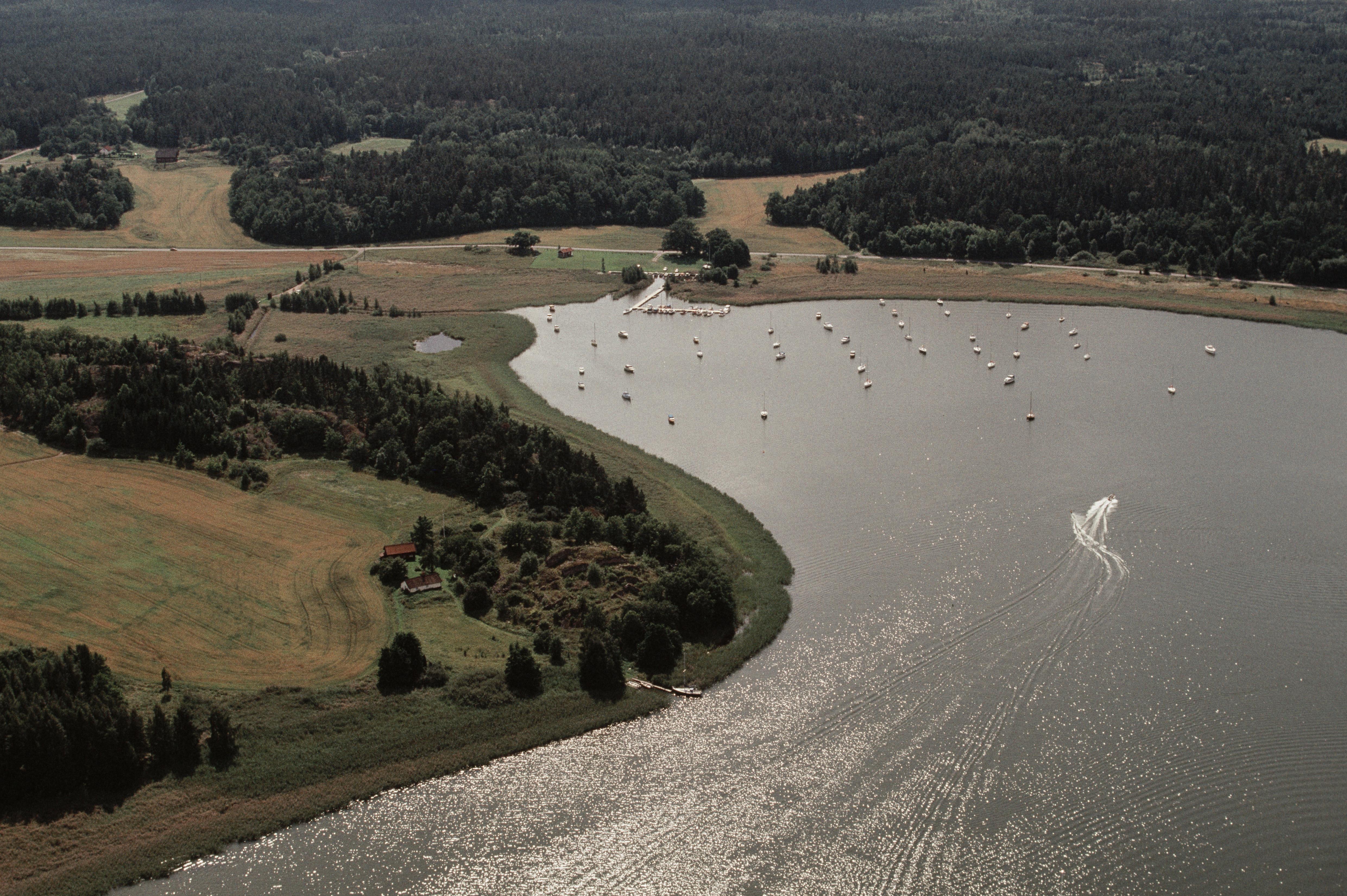 Beskrivning: Havsviken Slätbaken. Skällviks borgruin RAÄnr Skällvik 1:1 vid Yxeltorpa vik. Bilden är tagen mot (väderstreck): S