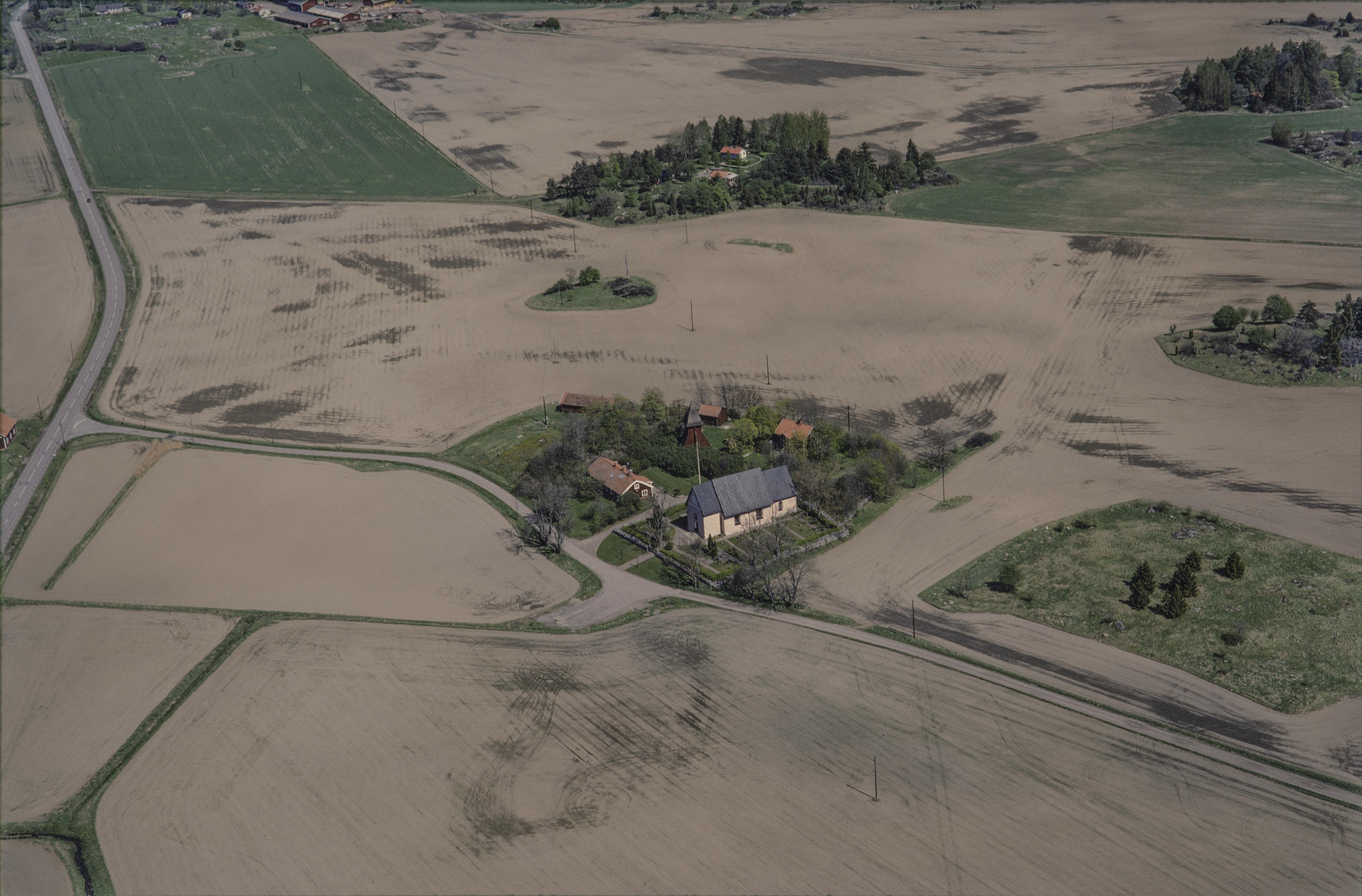 Beskrivning: Haga kyrka. Vid kyrkan bytomt RAÄnr Haga 30:1 och 58:1. Bilden är tagen mot (väderstreck): NO