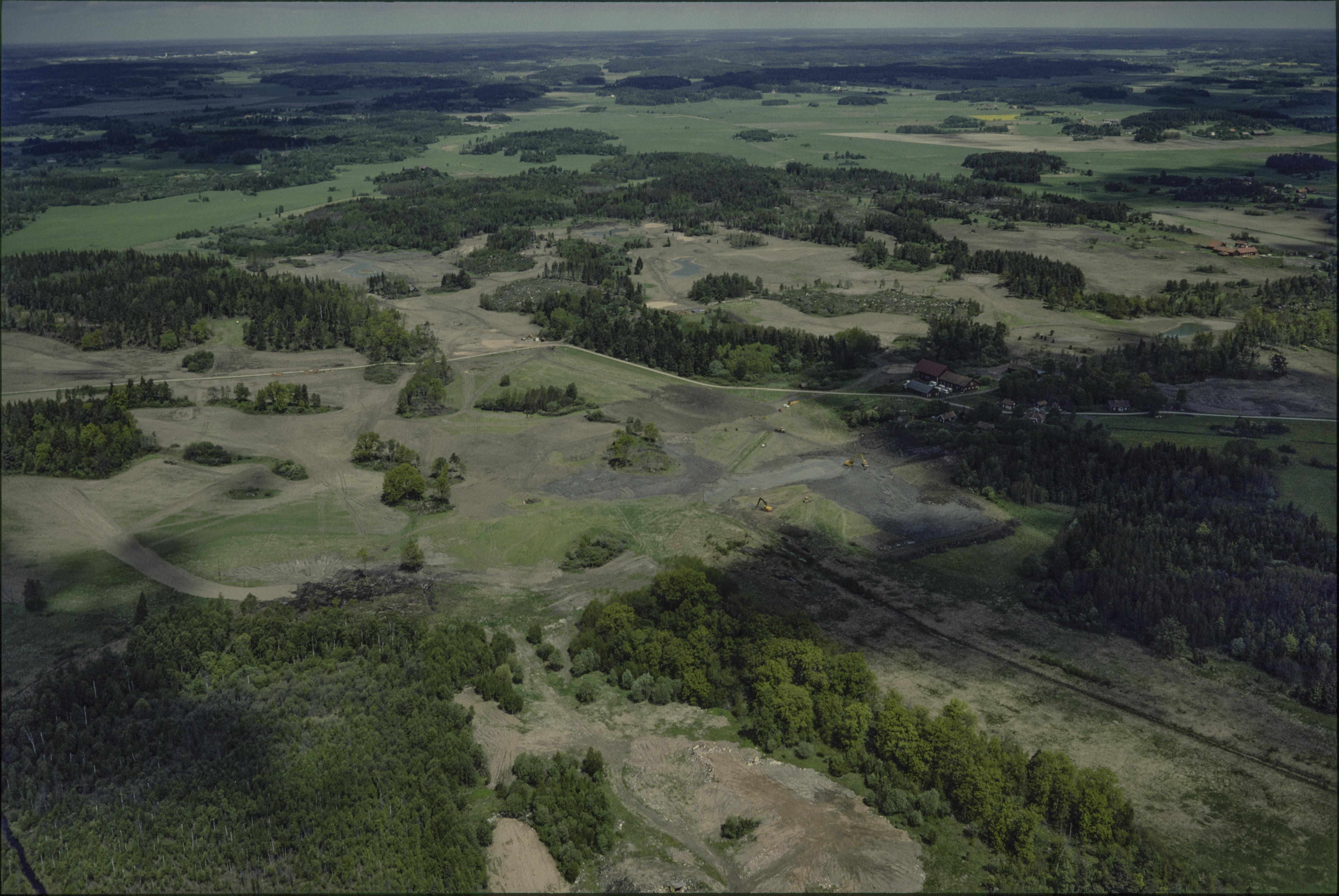Beskrivning: Grustäkt söder om Nibble golfbana vid gränsen mellan socknen Hammarby och Fresta. Vid bildens mitt stensträngar och hägnad RAÄnr Hammarby 314:1 och 315:1. Bilden är tagen mot (väderstreck): NNO