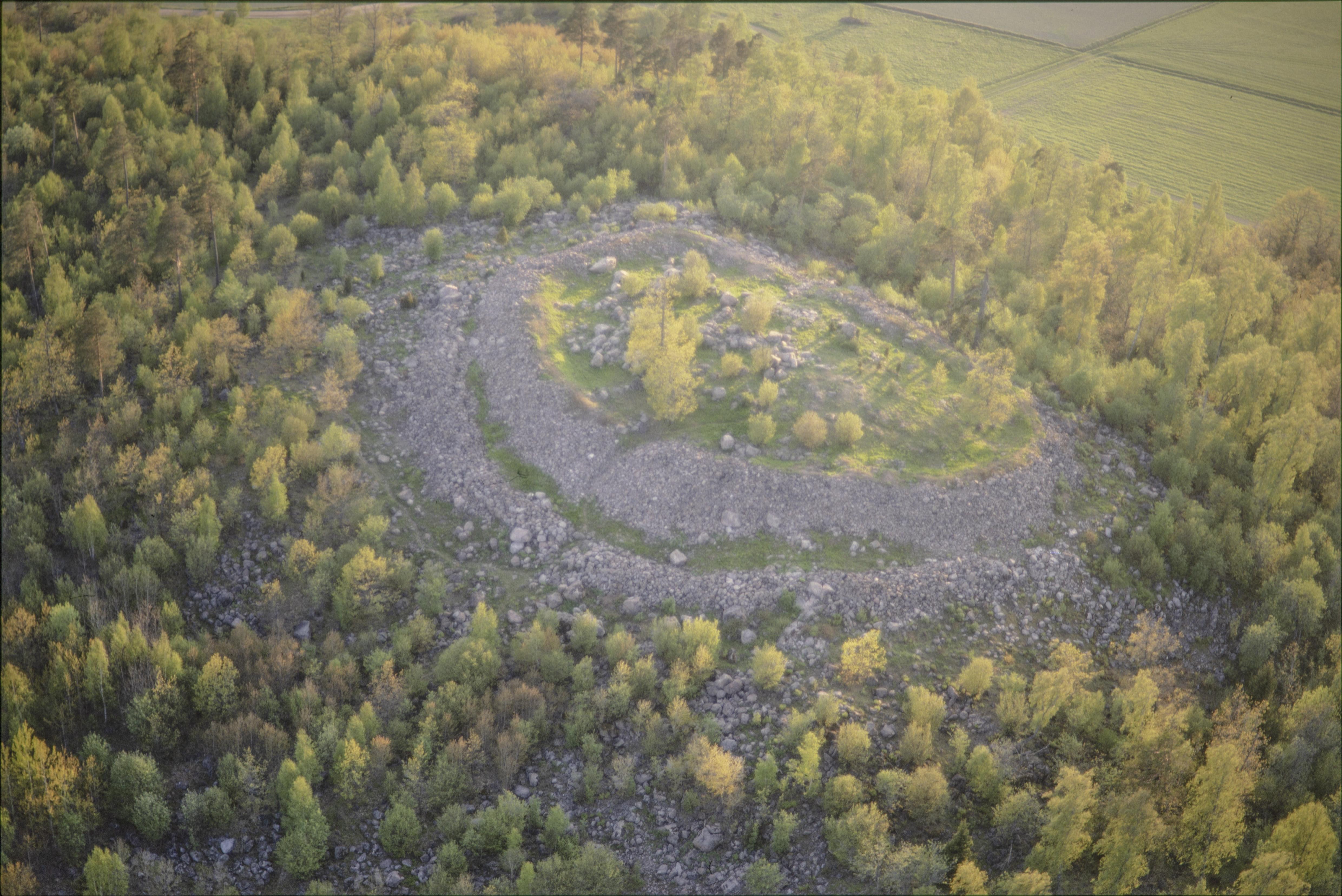 Beskrivning: Område norr om Lilla Vallby och Storån i Långhundraleden. Fornborgen Broborg RAÄnr Husby-Långhundra 156:1 vid bildens mitt. Bilden är tagen mot (väderstreck): VNV