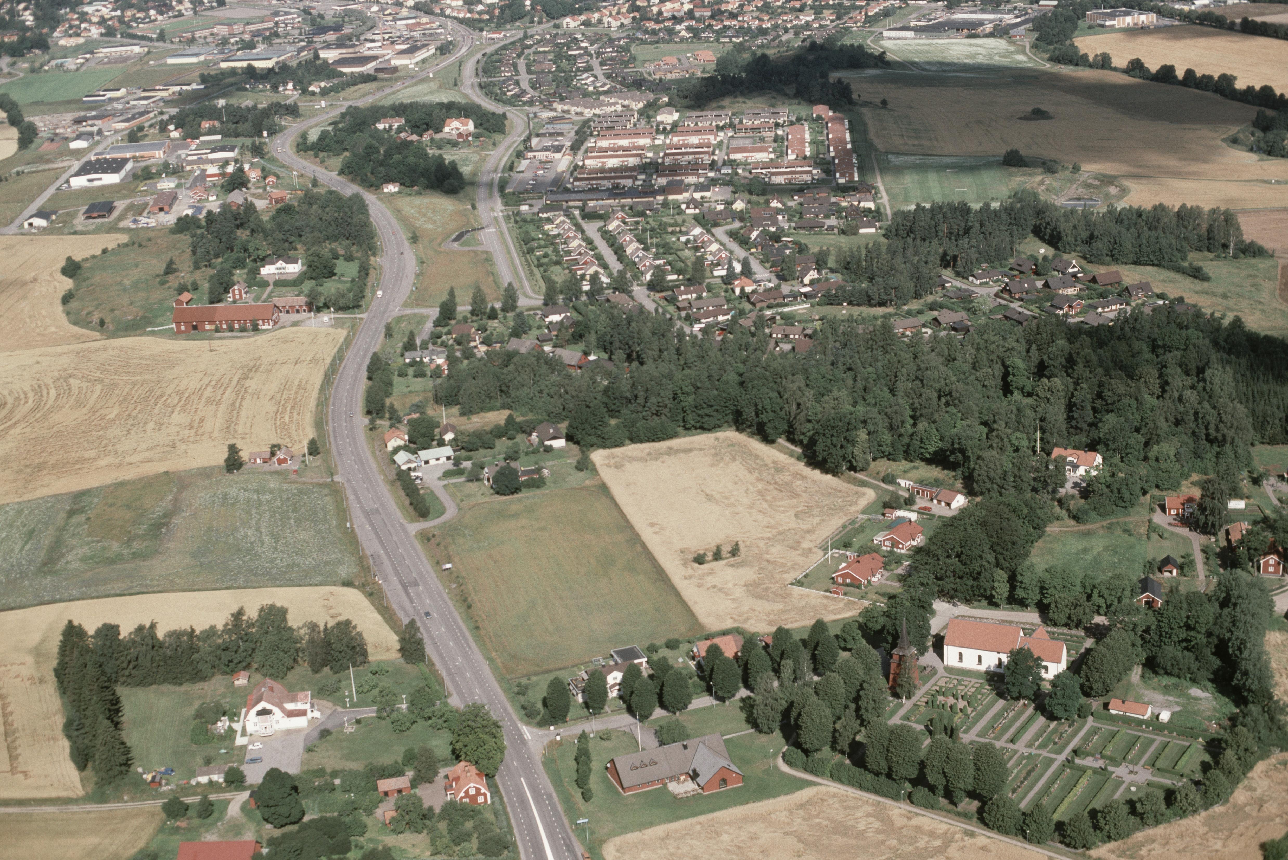 Beskrivning: Skönberga kyrka nere till höger. I bildens övre del socknet och staden Söderköping. Bilden är tagen mot (väderstreck): NV