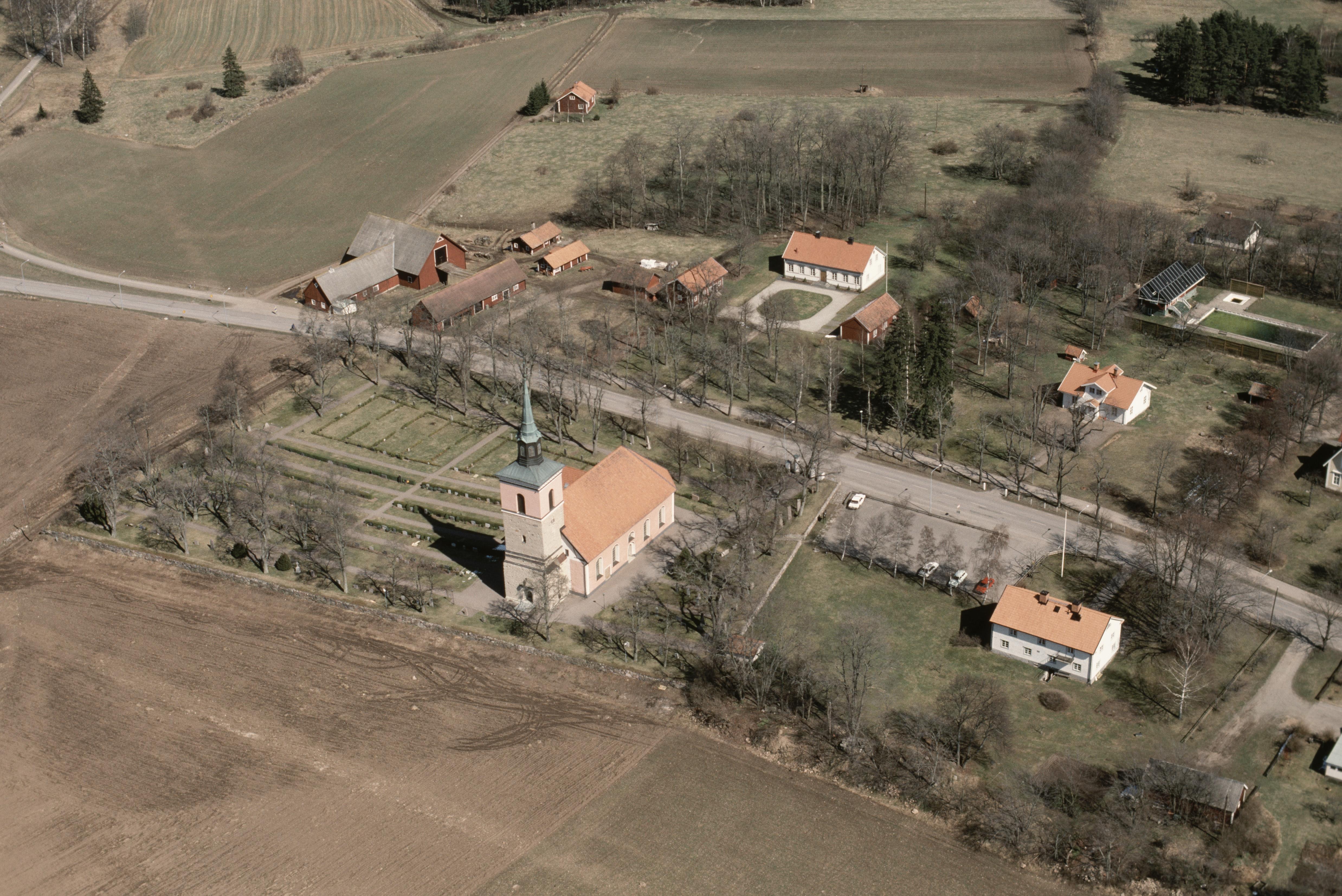Beskrivning: Slaka kyrka / Sofia Albertina kyrka och kyrkby. Bilden är tagen mot (väderstreck): ONO