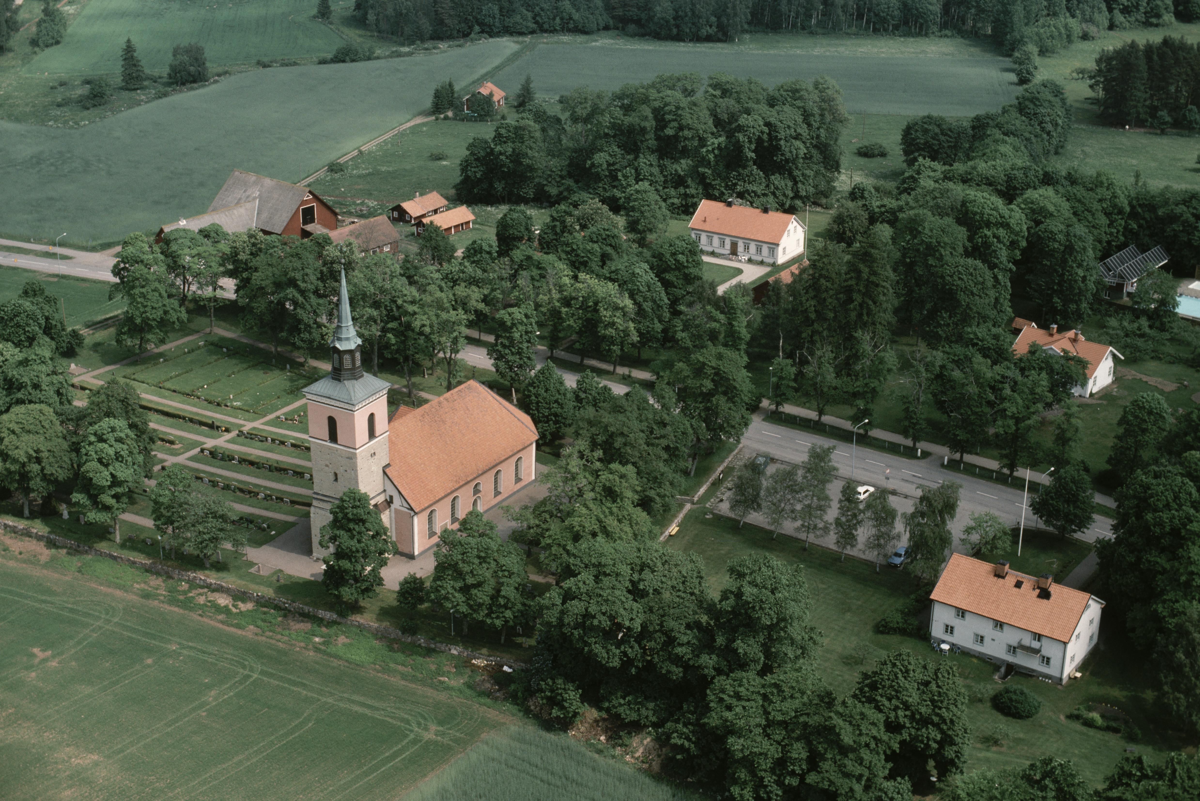 Beskrivning: Slaka kyrka / Sofia Albertina kyrka och kyrkby. Bilden är tagen mot (väderstreck): NO